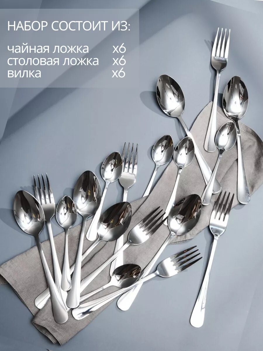 | В набор входит | 6 чайных ложек, 6 столовых ложек, 6 вилок |