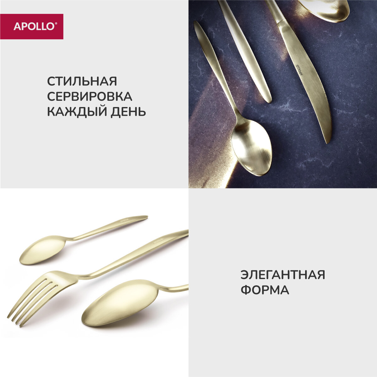 Столовые приборы, набор 16 предметов Apollo "Lungo matt Сhampagne" 4 персоны матовое золото интересное:
