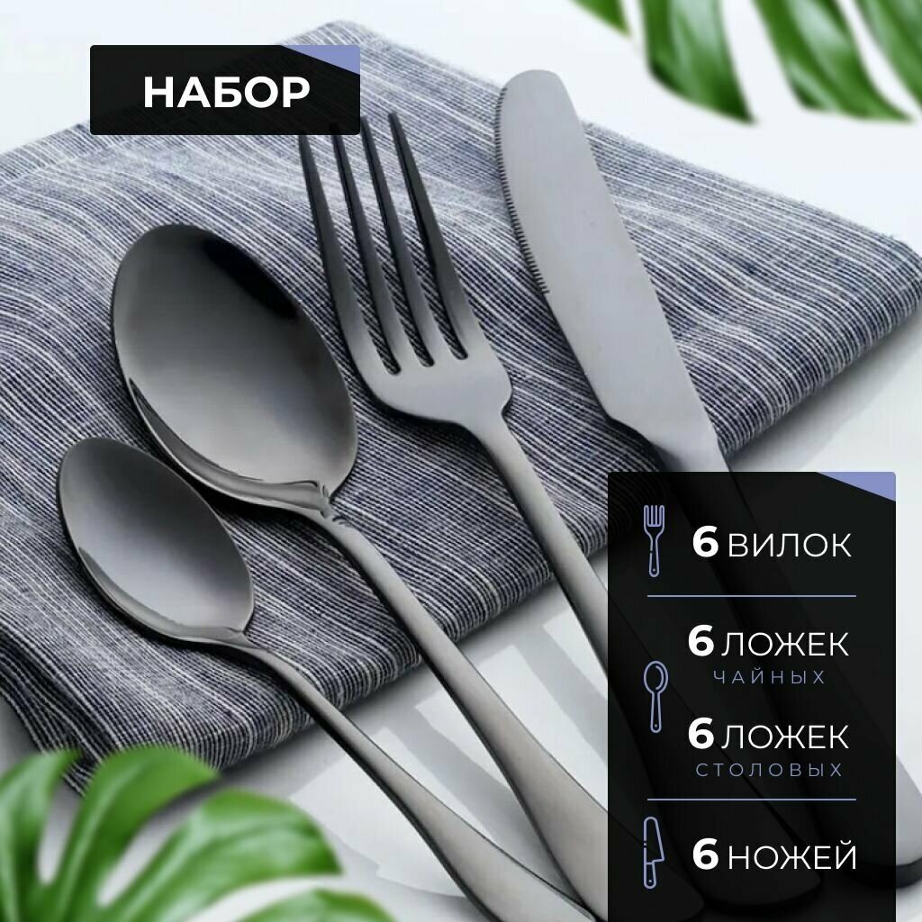 Набор столовых приборов 24 предмета черный глянец интересное: