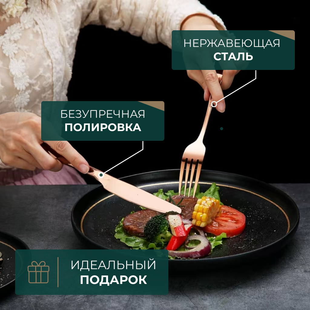 СохранитьНабор столовых приборов 16 предметов цвета "розовое золото" интересное: