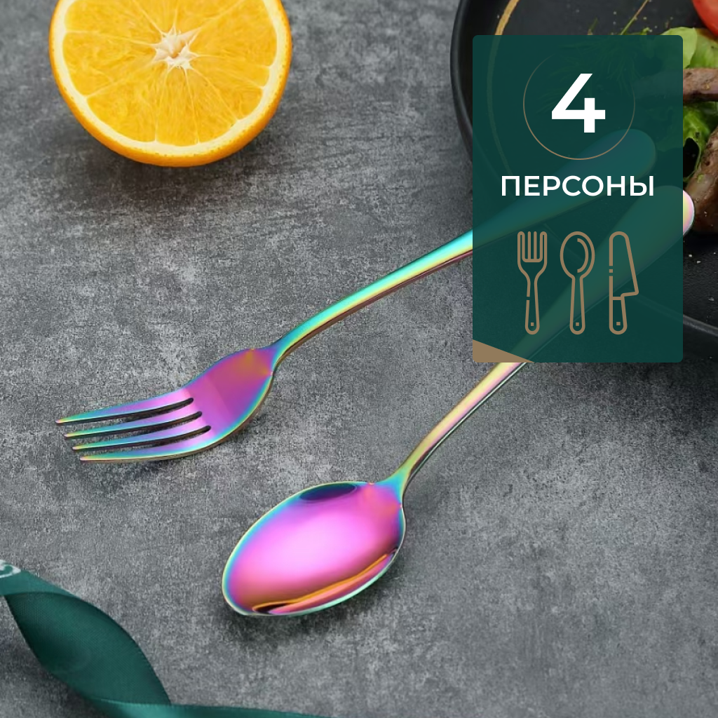 Набор столовых приборов 16 предметов радужного цвета интересное: