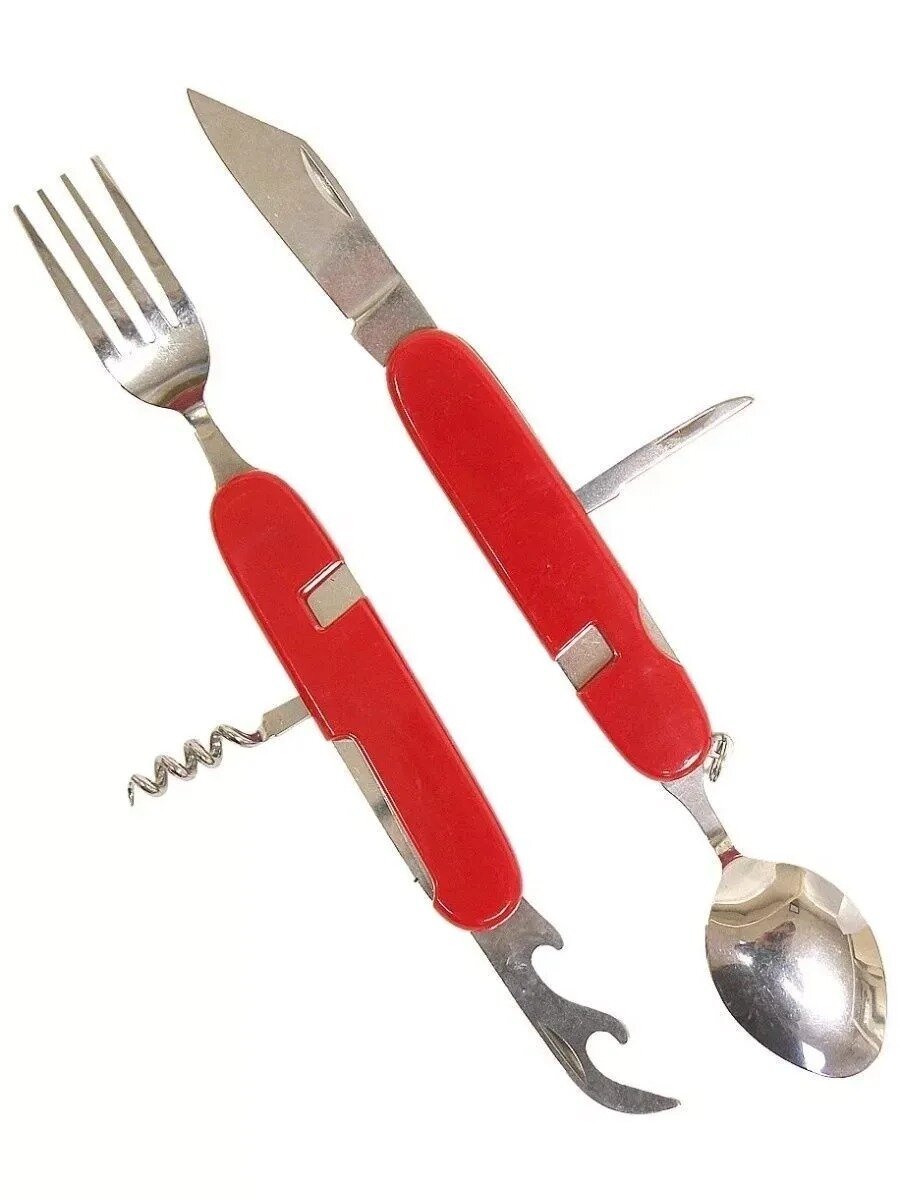 Набор складных столовых походных приборов 6 в 1, нож, вилка, ложка, штопор интересное: