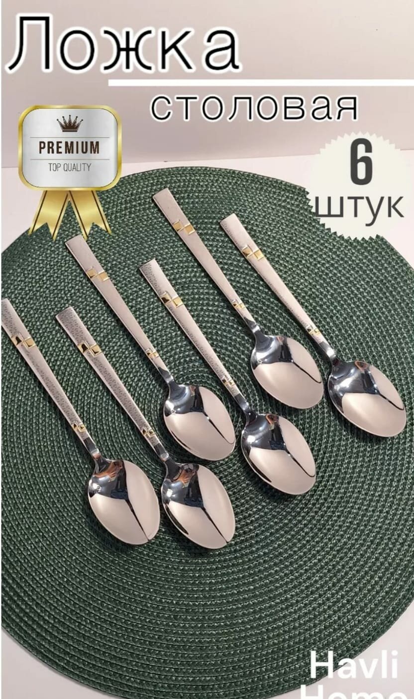 | В набор входит | 6 столовых ножей, 6 столовых ложек, 6 столовых вилок, 6 чайных ложек |