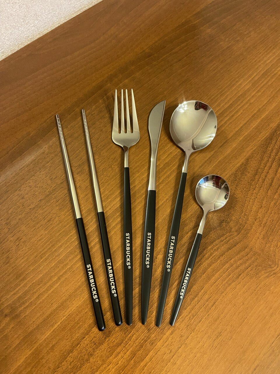 | В набор входит | Столовая ложка, столовая вилка, столовый нож, чайная ложка, палочки для еды (2шт) |