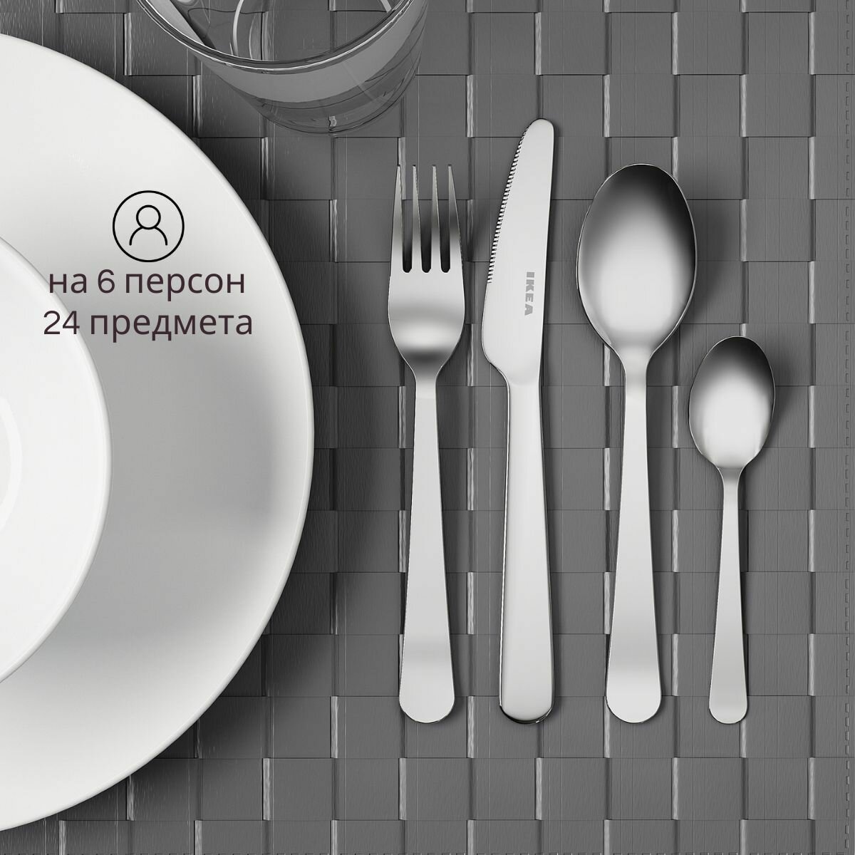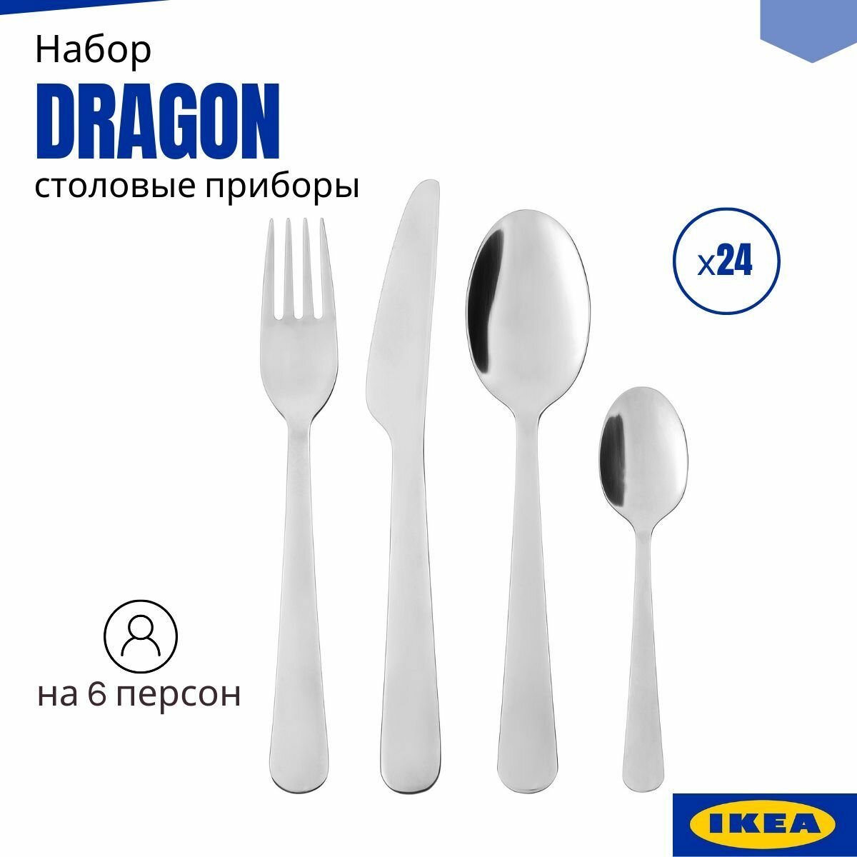 Купить Набор столовых приборов на 6 персон икеа драгон. 24 предмета. Столовые приборы набор 24 предмета