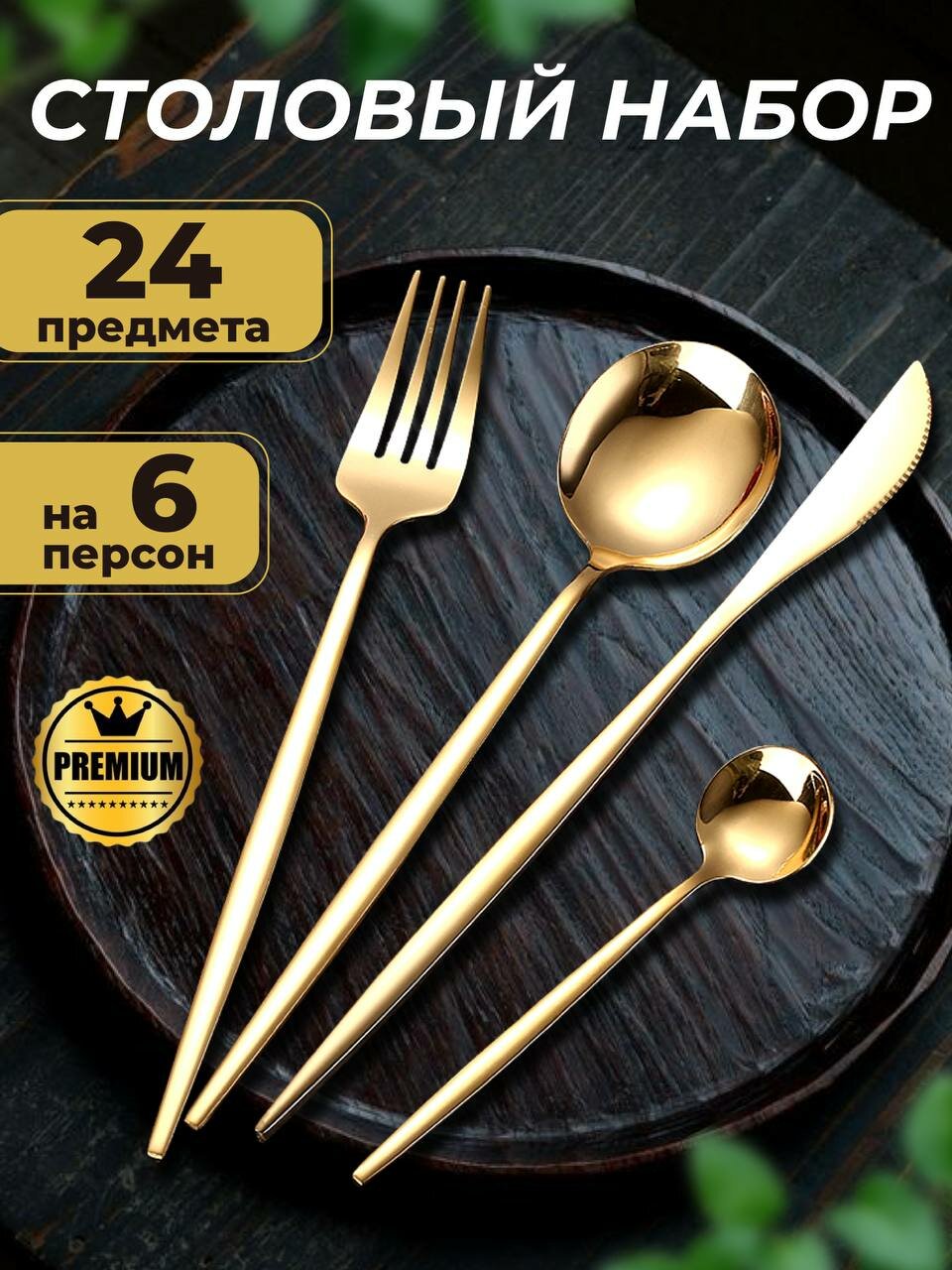 СохранитьНабор столовых приборов, столовые приборы на 6 персон, столовый набор 24 предмета, глянцевый золотой интересное: