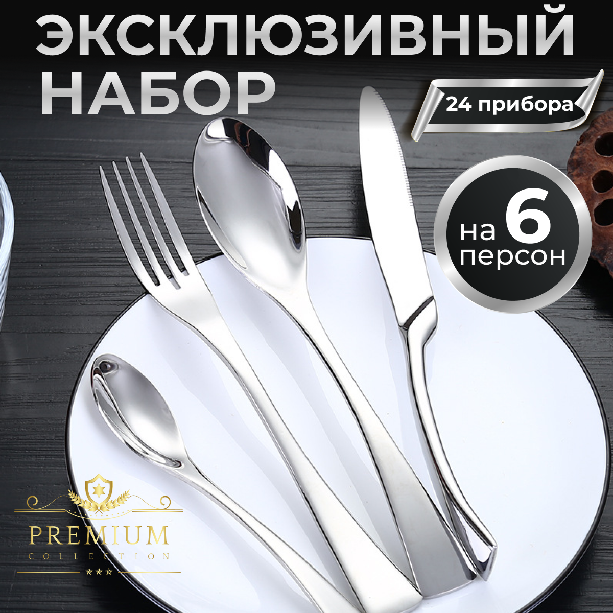 Набор столовых приборов на 6 персон 24 предмета цвет серебро, эксклюзивный