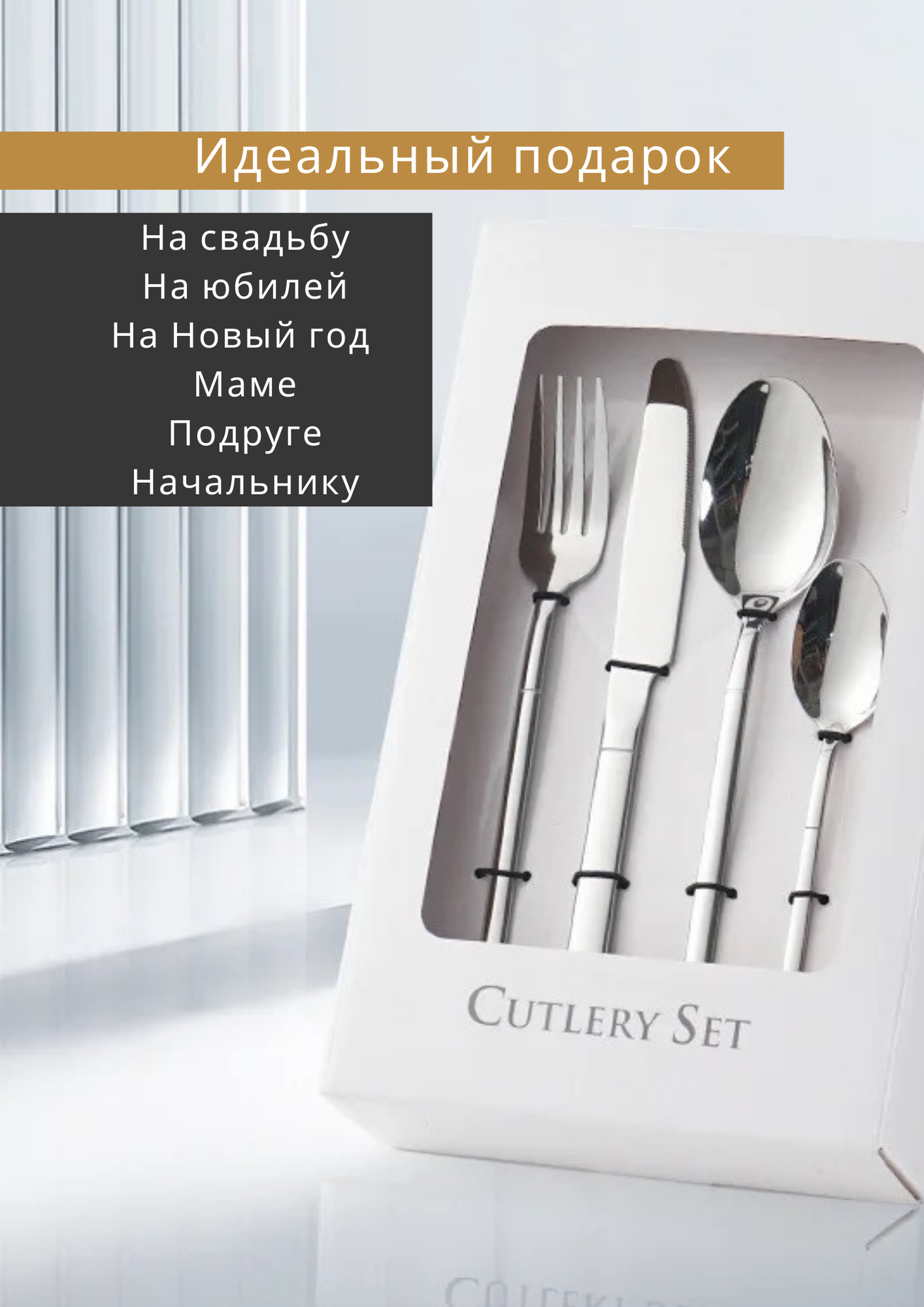 Набор столовых приборов на 6 персон 24 шт в белой упаковке серебро интересное: