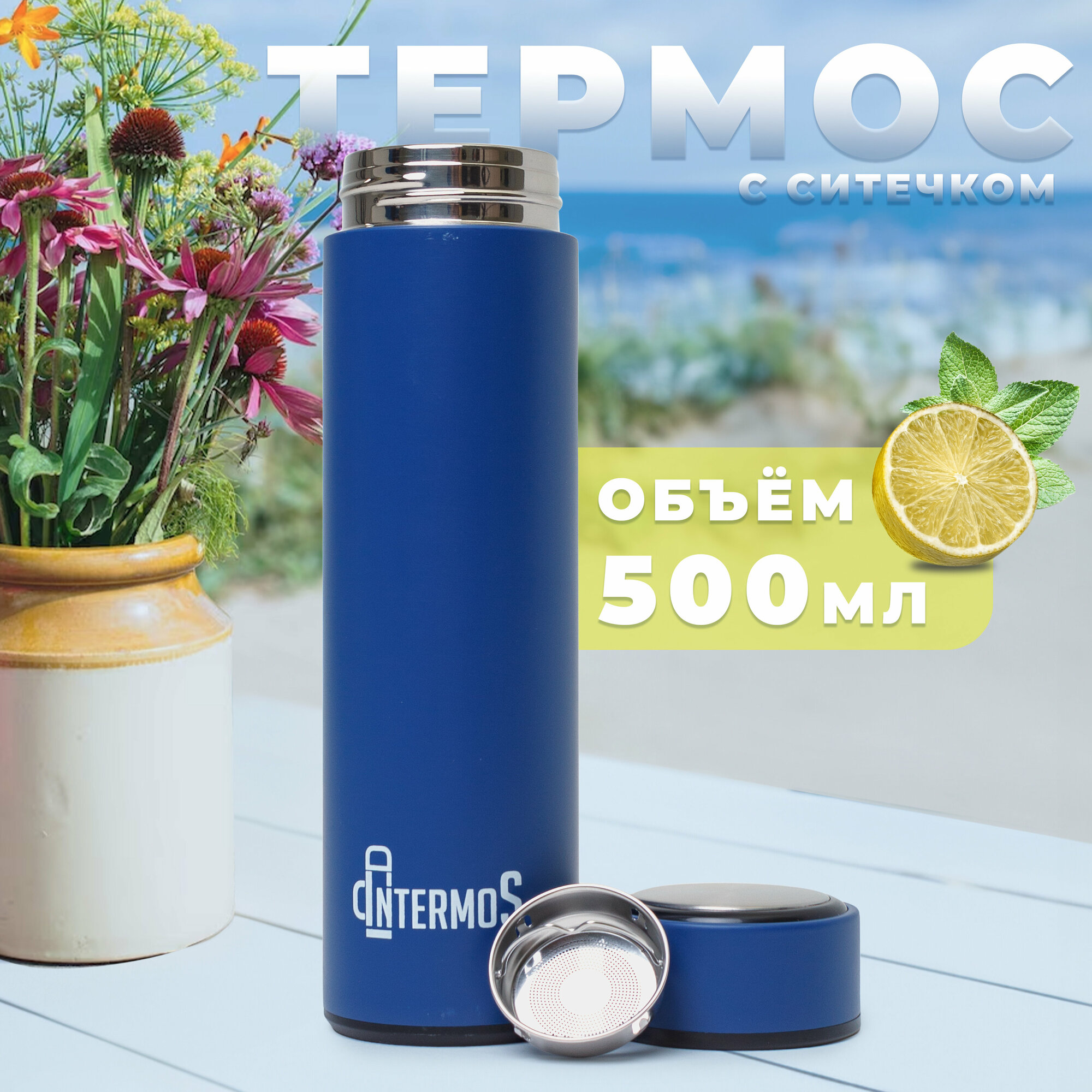 Купить Термос Intermos 500 мл, нержавеющая сталь, синий