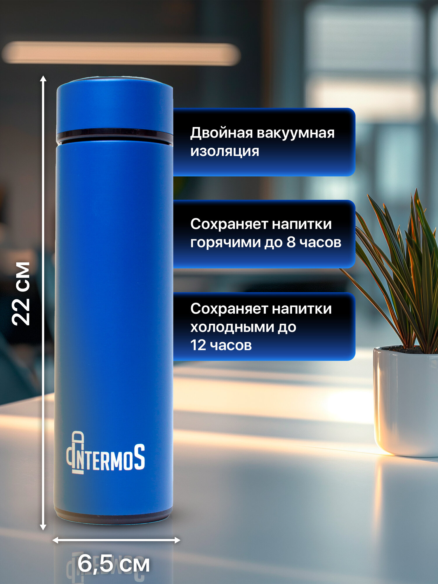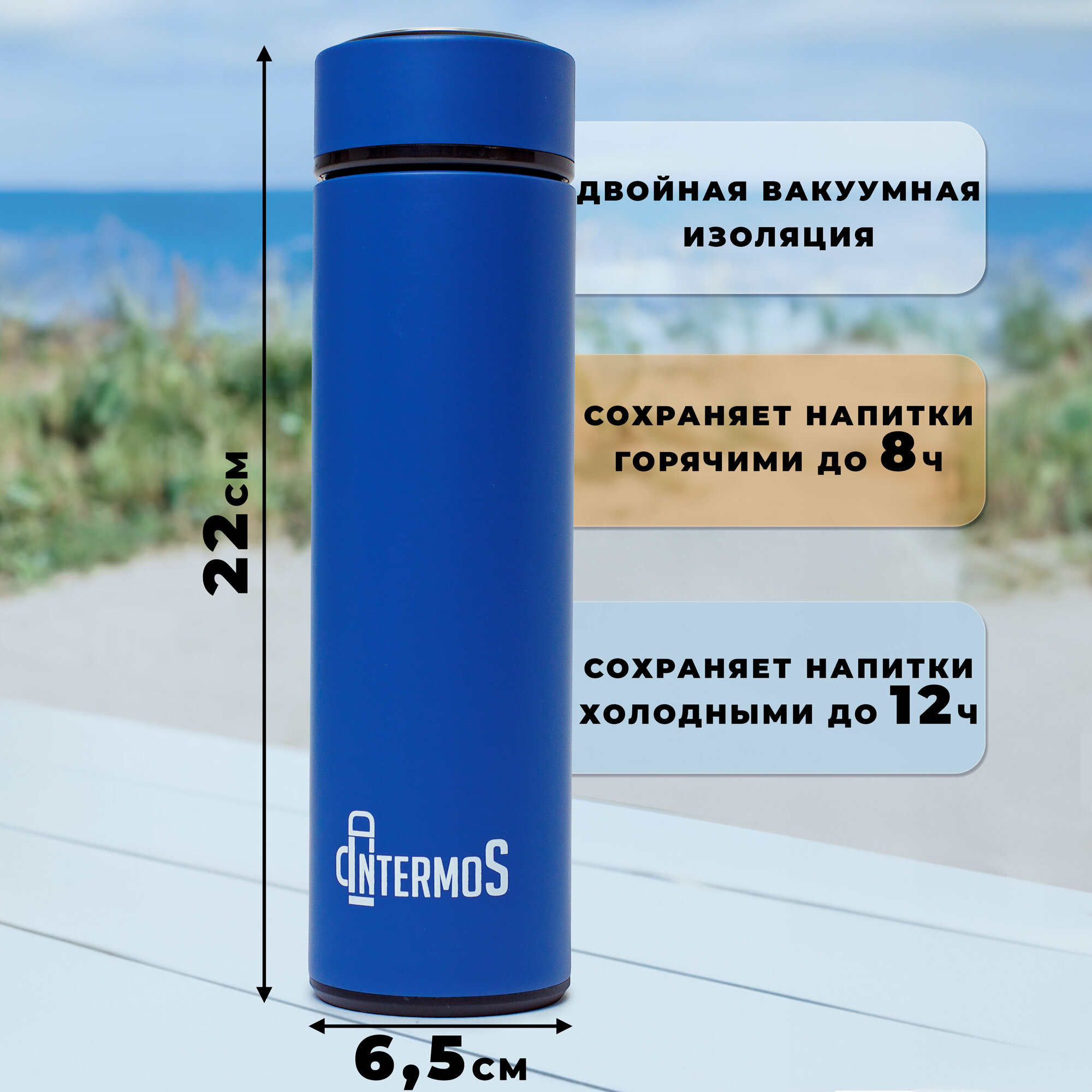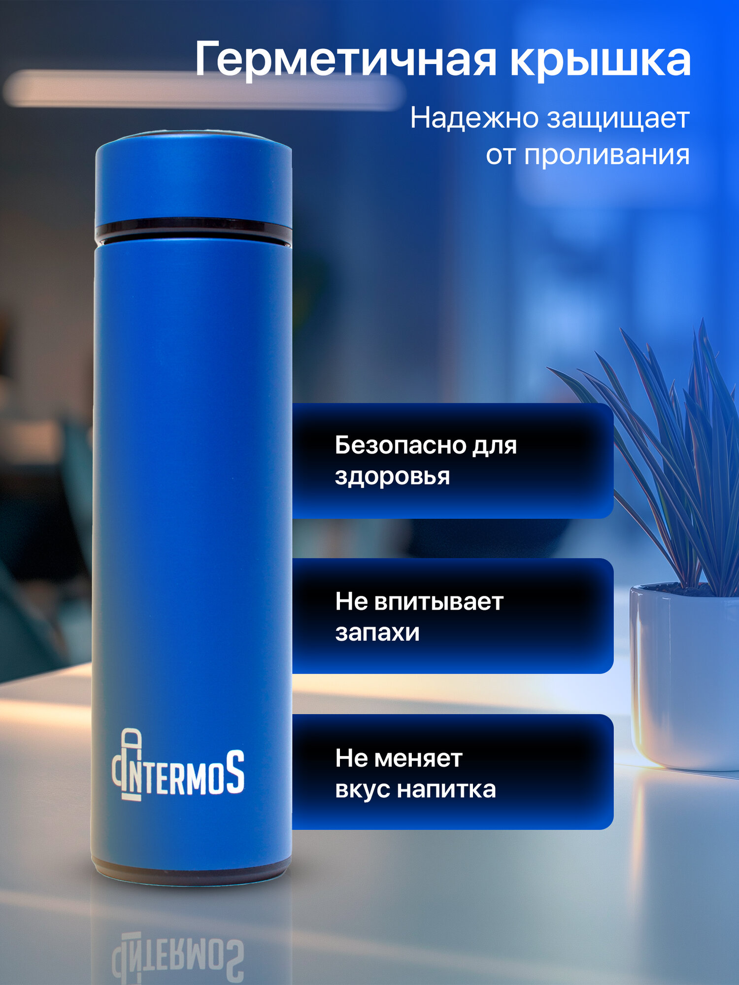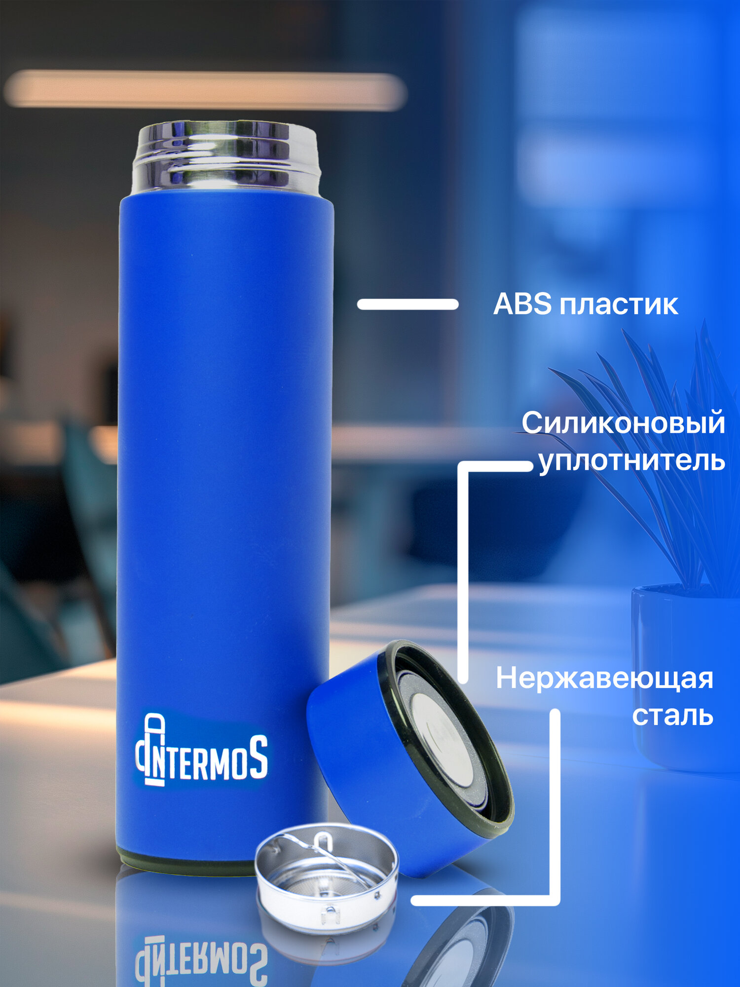 Термос IntermoS с датчиком температуры 500 мл, термокружка, синий