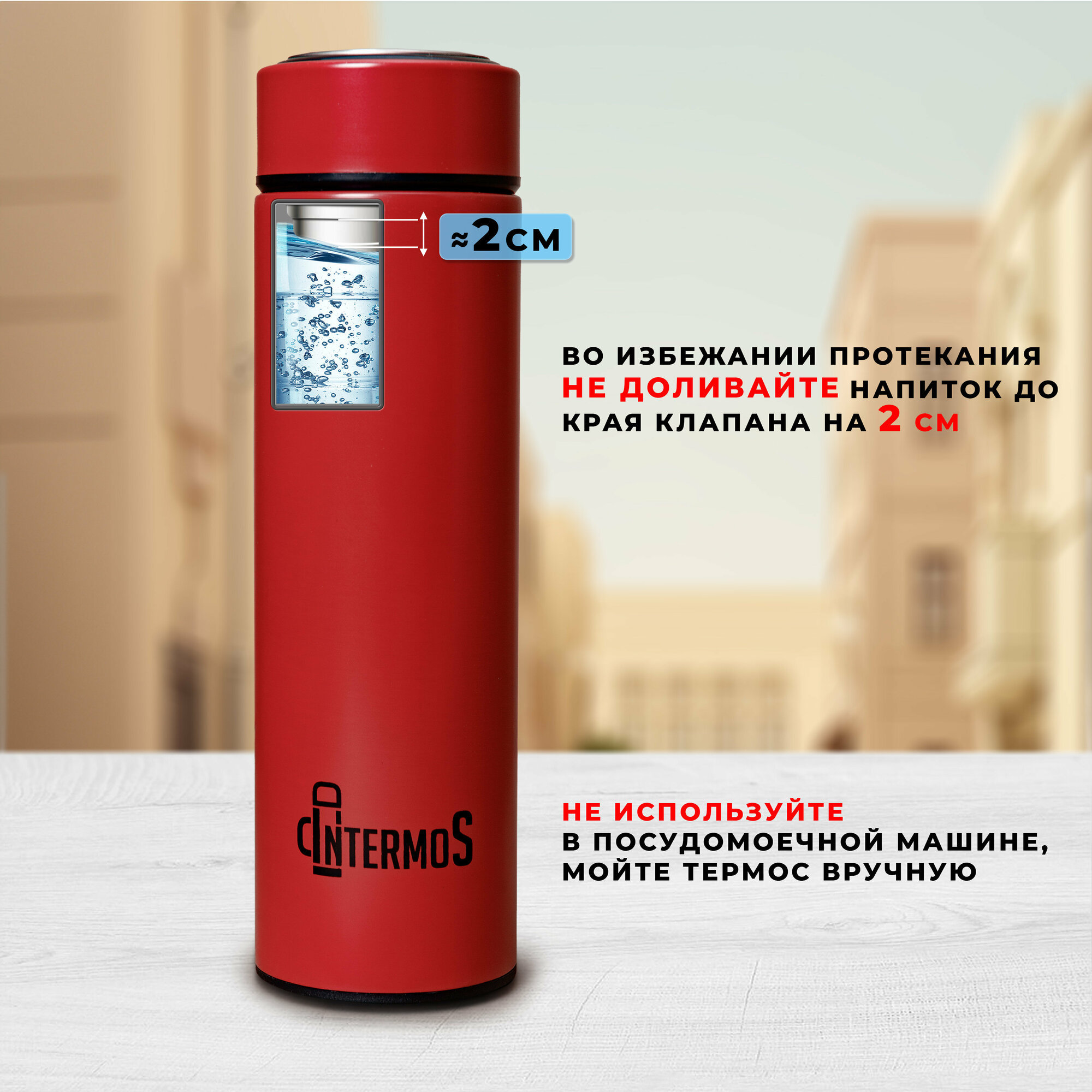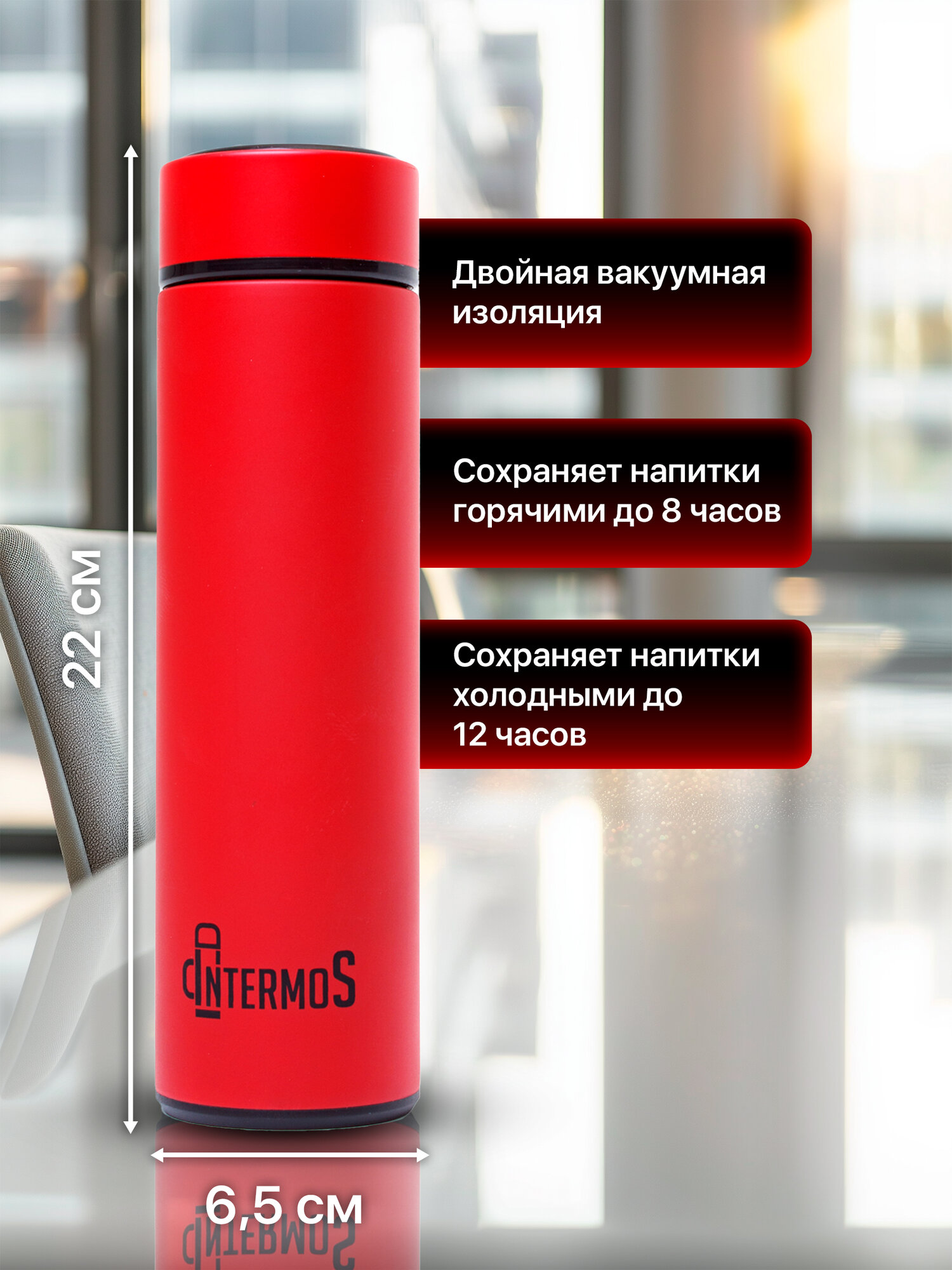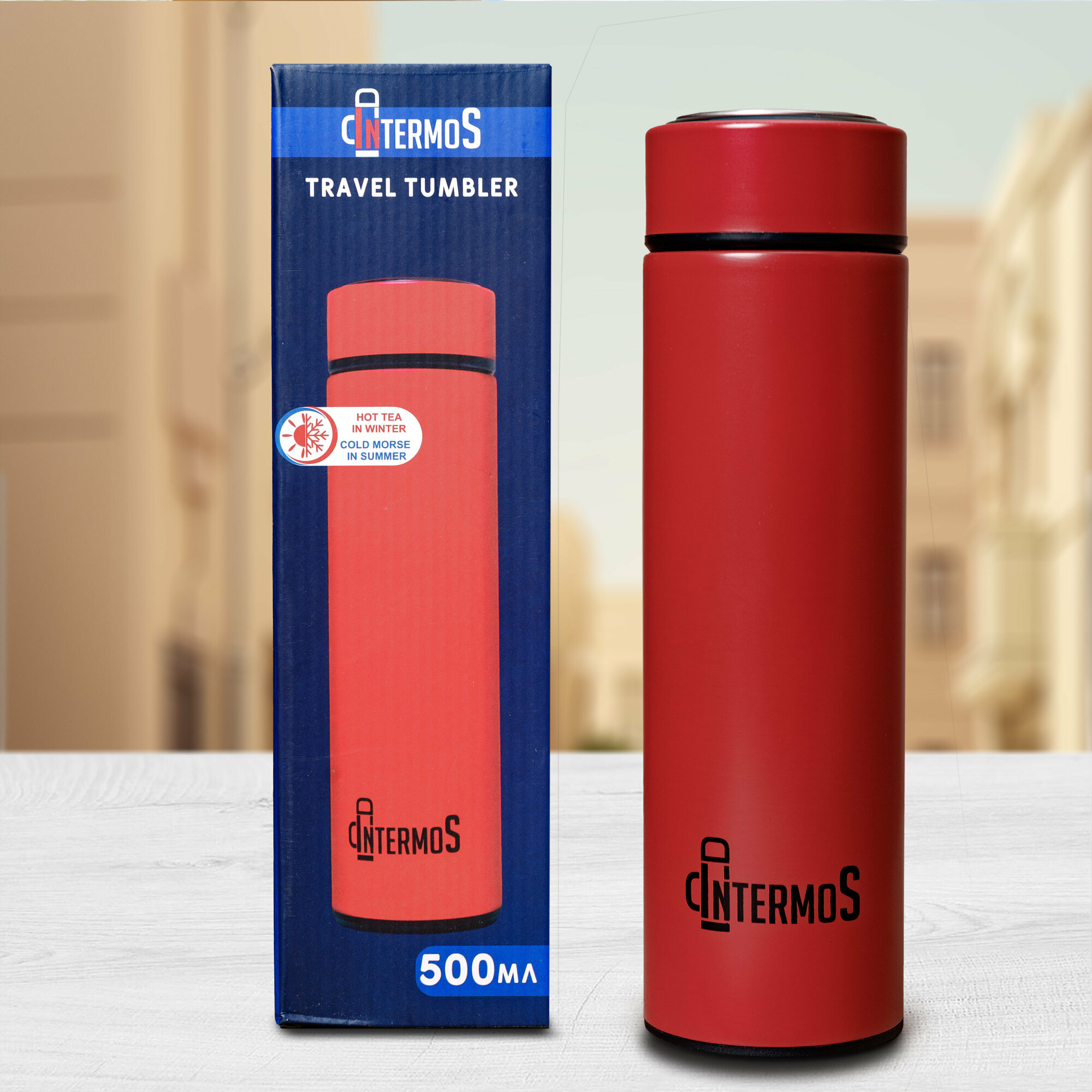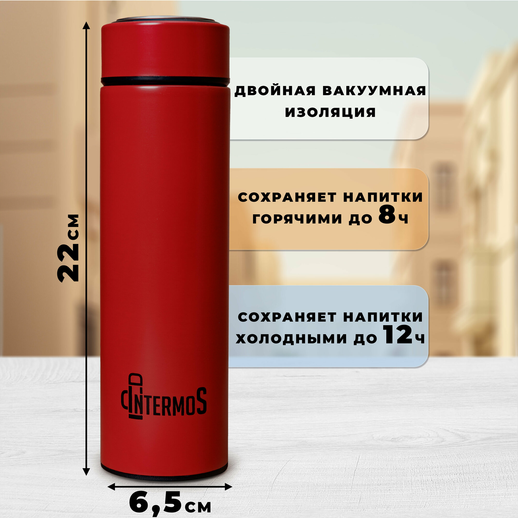 Термос IntermoS с датчиком температуры 500 мл, термокружка, красный