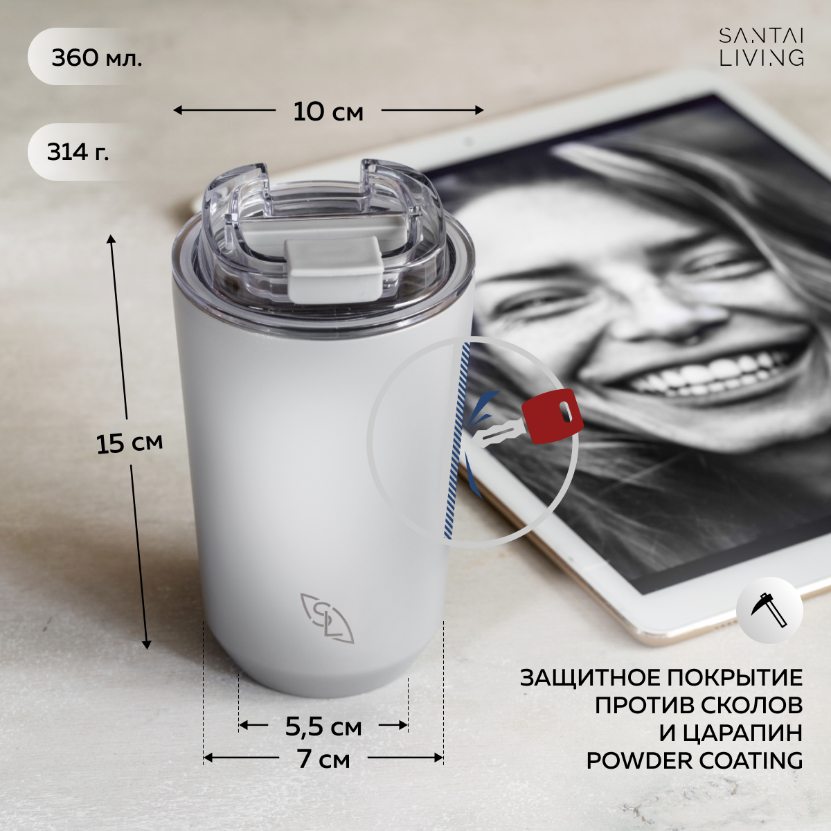 Термокружка, термос Santai Living для кофе Coffer M 360мл, белая