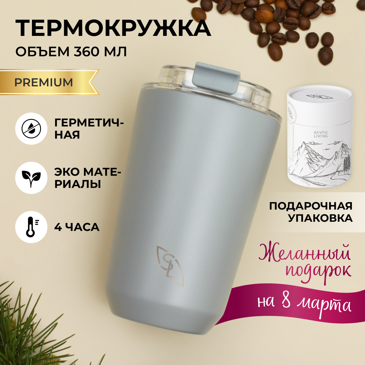 Термокружка, термос Santai Living для кофе Coffer M 360мл, бежевая