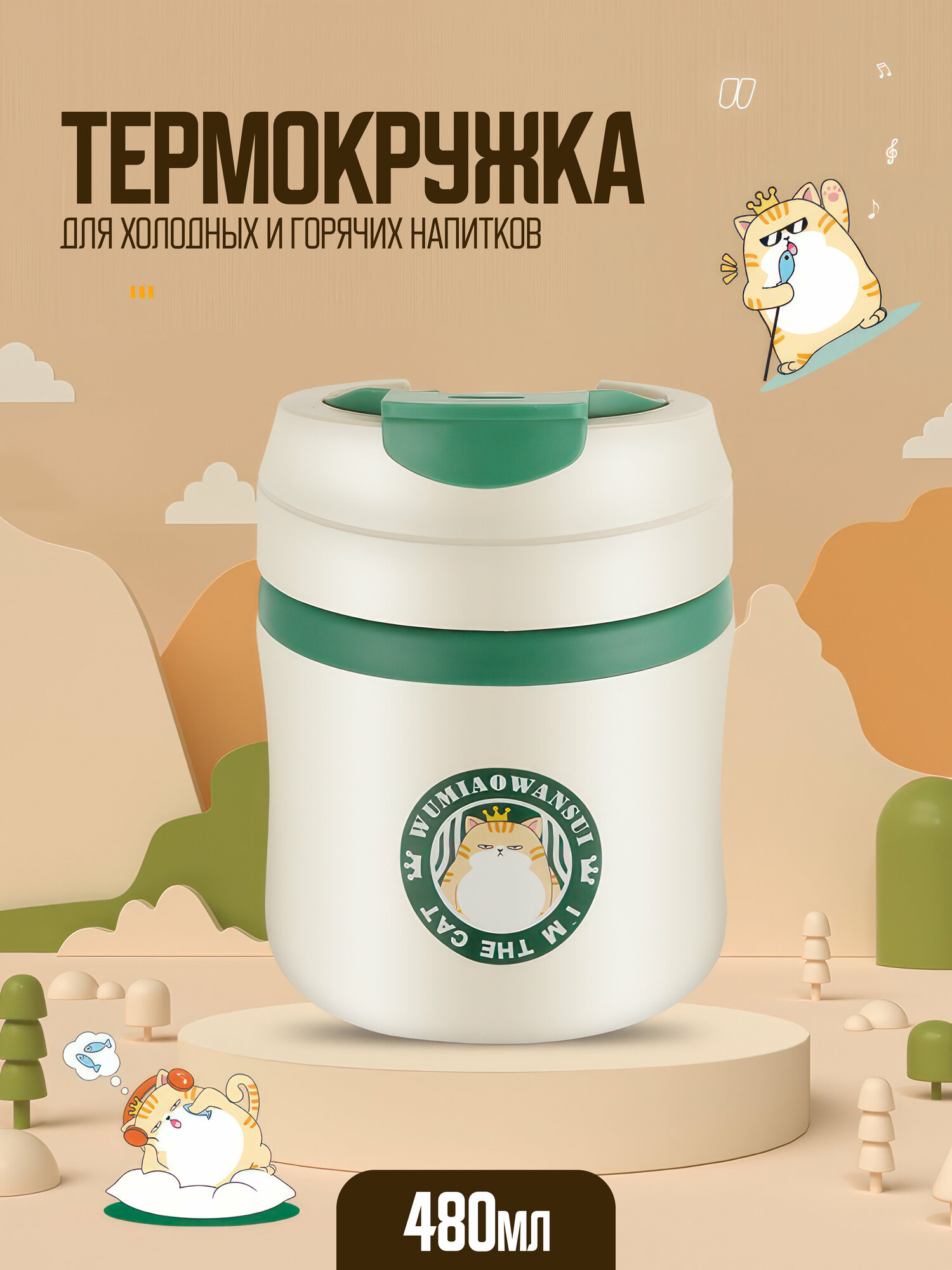 Термокружка для горячих напитков 480 мл / Термокружка для кофе / Стакан с крышкой / Стакан для горячих напитков интересное: