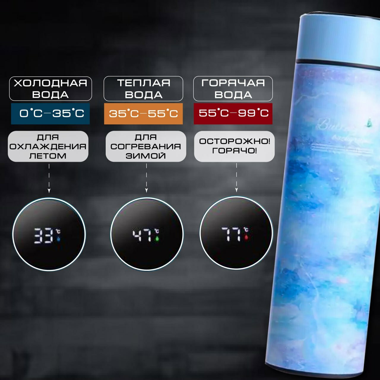 Купить Термос с датчиком температуры, термос для чая, термопосуда
