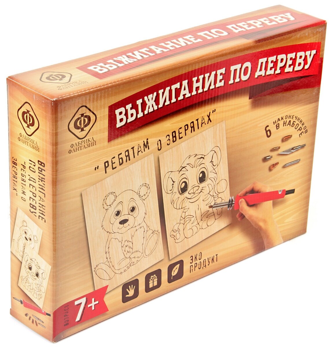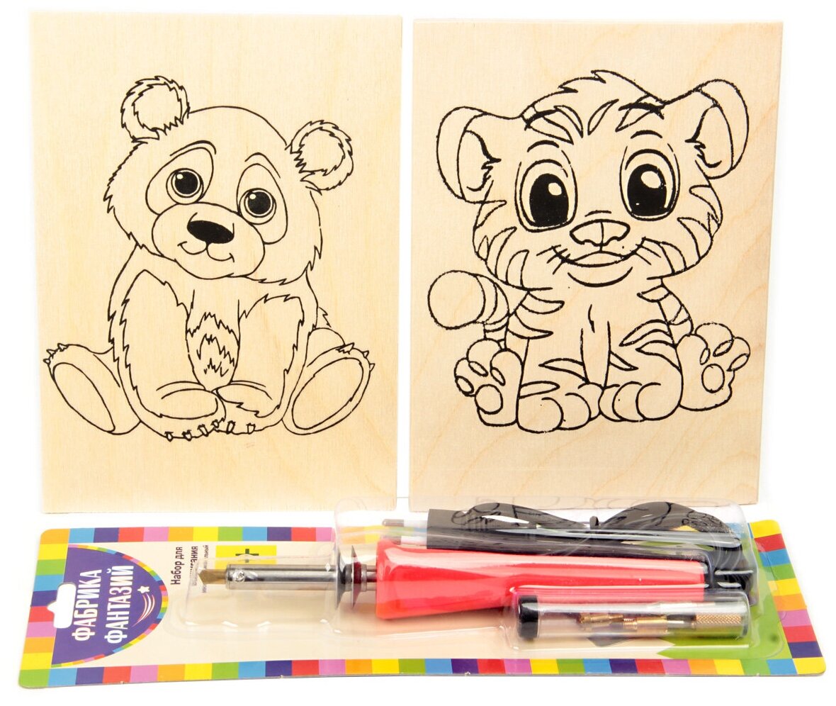 Набор для выжигания с прибором Ребятам о зверятах, 2хА5, Фабрика Фантазий / Выжигатель по дереву с насадками