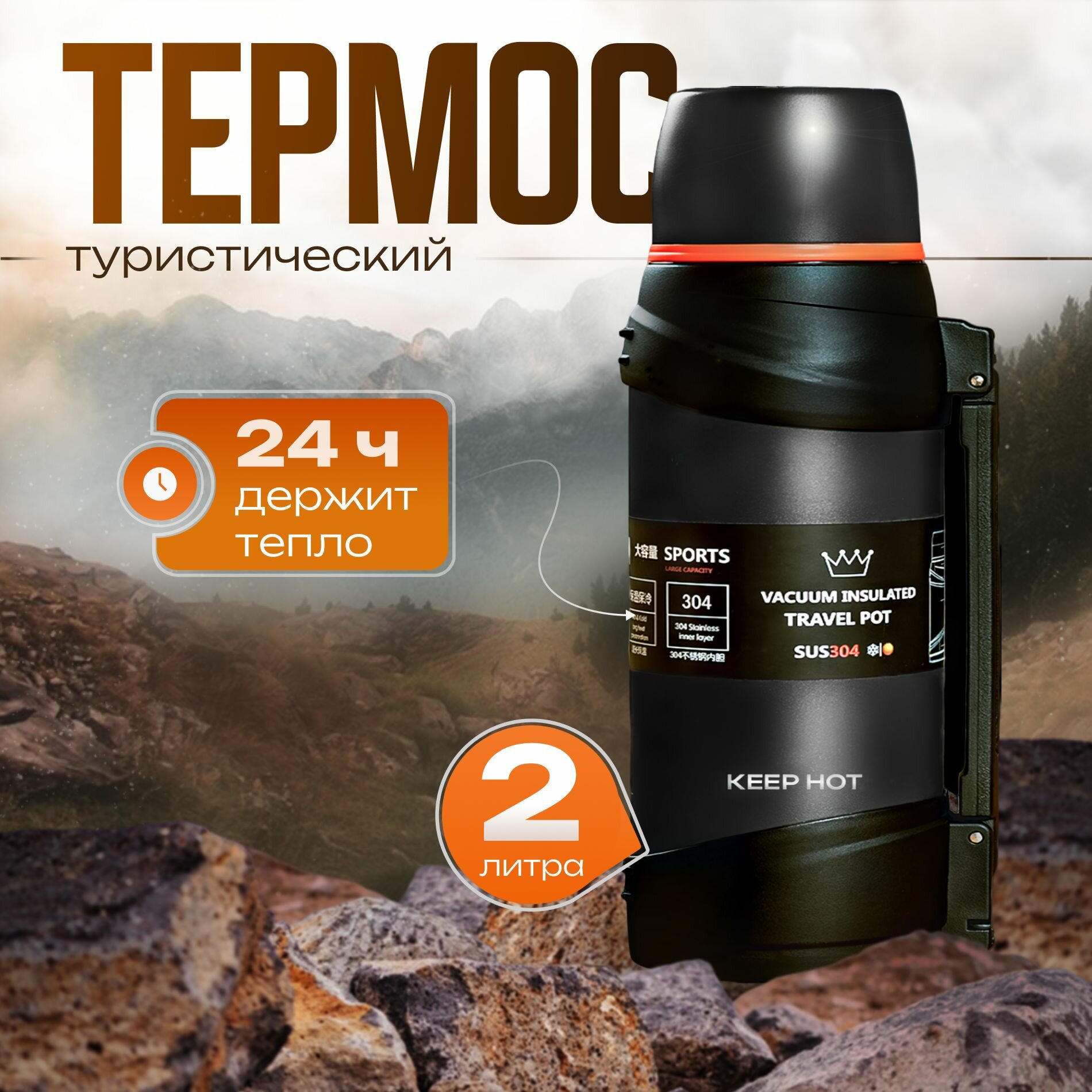 Keep Hot 2L - туристический, ударопрочный, термос для чая, горячих и холодных напитков, черный, 2000 мл интересное: