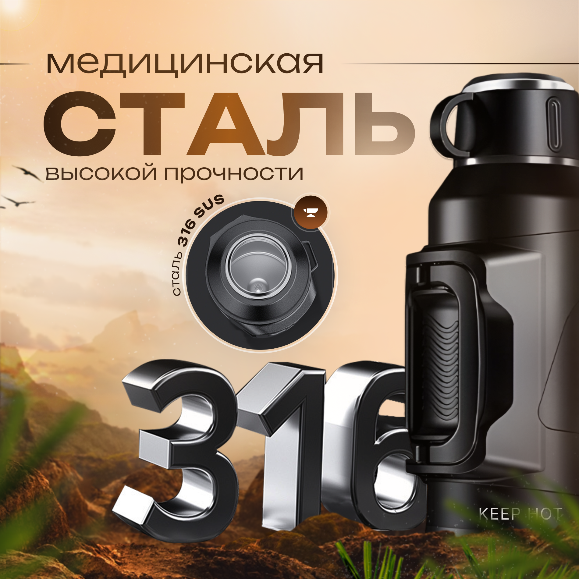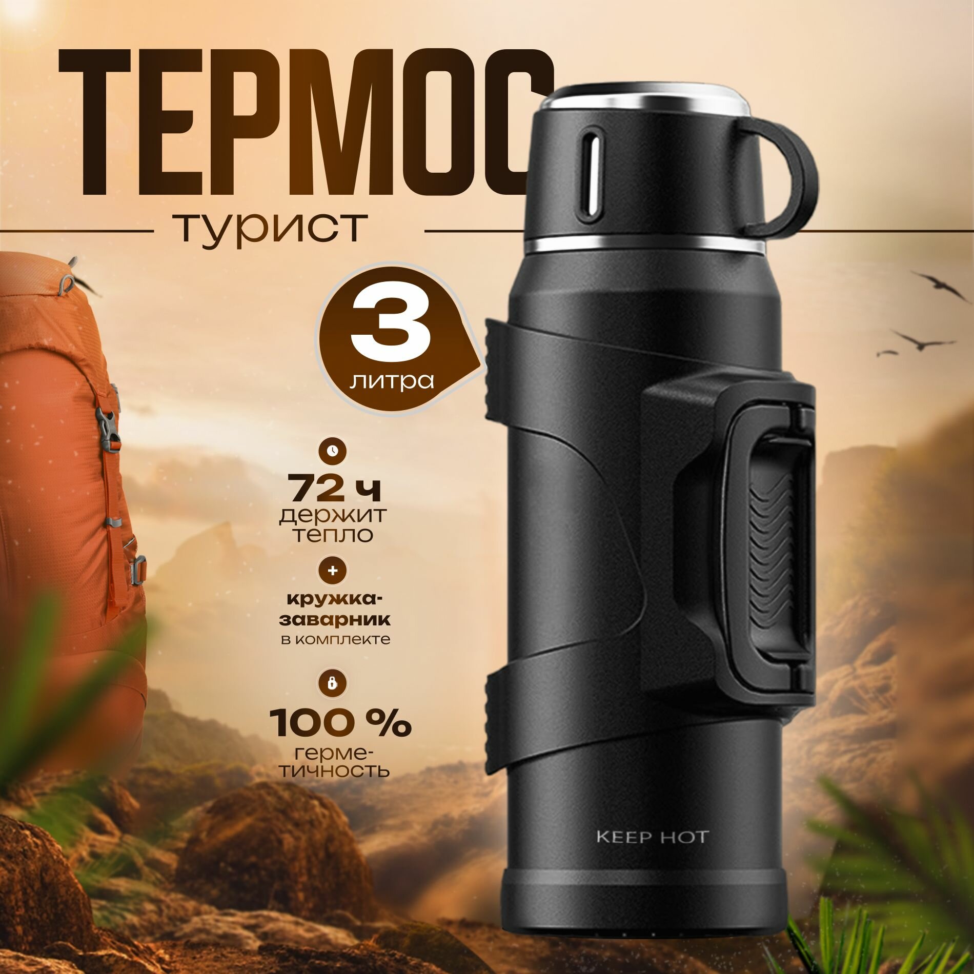 Keep Hot 3L - Туристический термос для чая и кофе с ручкой, ударопрочный, 3 литра, черный интересное: