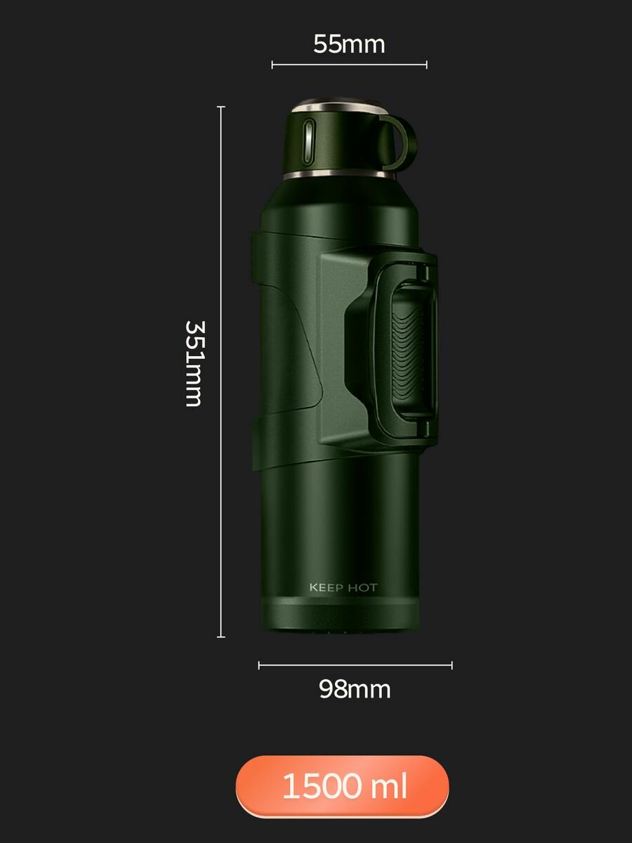 Купить Термос для чая 1.5 литра, туристический, ударопрочный, с ситечком и кружкой, KEEP HOT 1500, зеленый