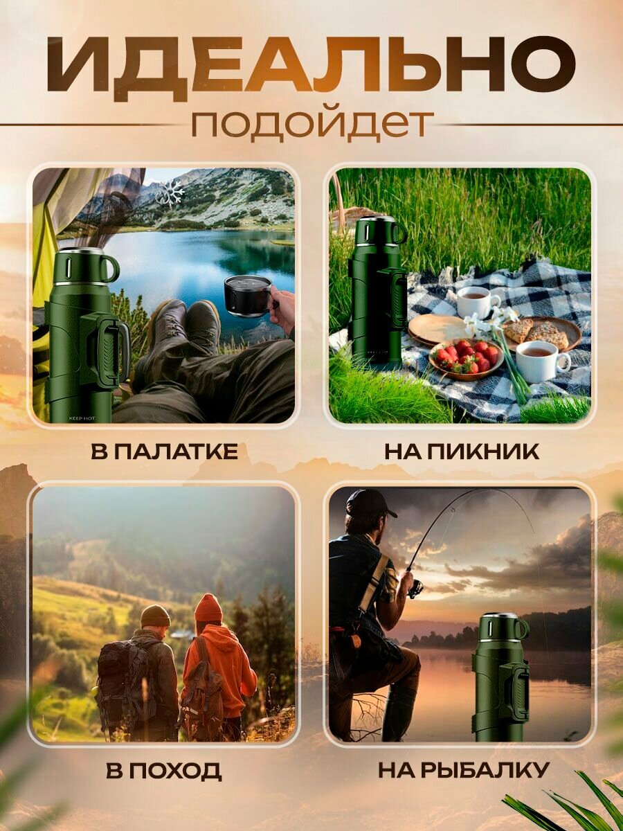 Термос для чая 1.5 литра, туристический, ударопрочный, с ситечком и кружкой, KEEP HOT 1500, зеленый интересное: