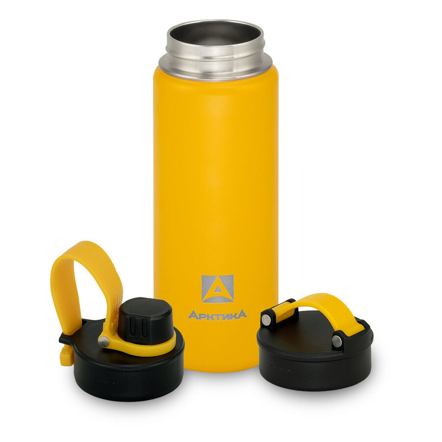 Термос Арктика 530мл с дополнительной пробкой с питьевой системой 708-530S, желтый текстурный интересное: