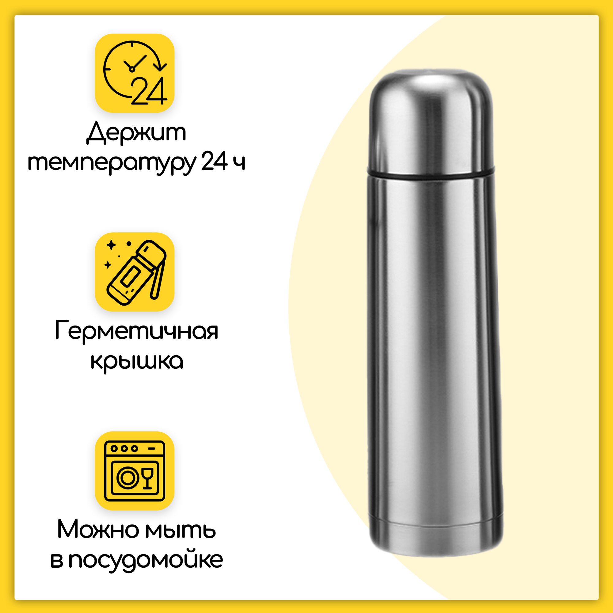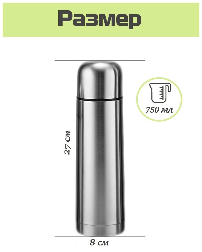 Термос ударопрочный из нержавеющей стали с крышкой-чашкой, 0.75 л, серебристый интересное: