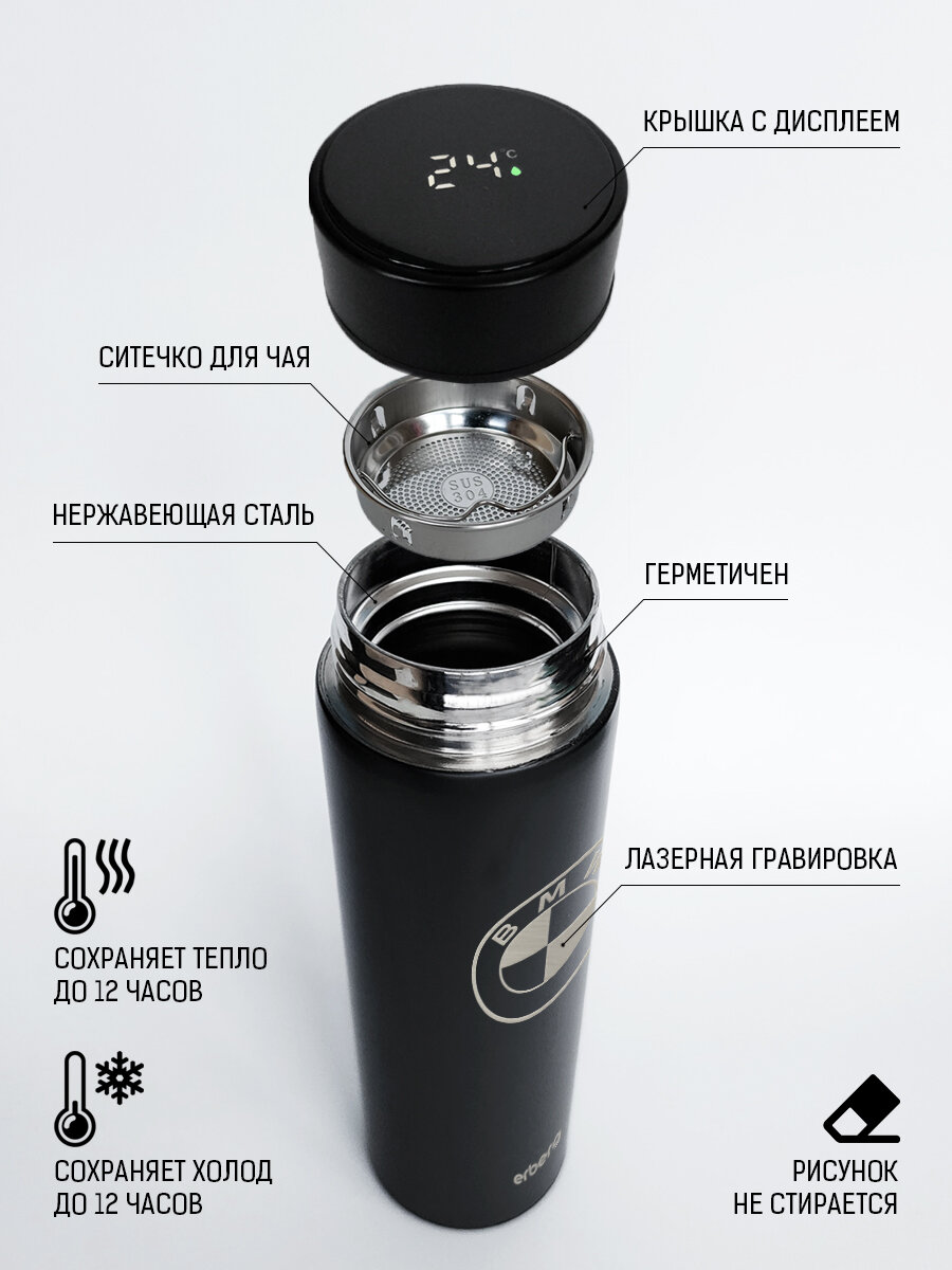 Купить Термос для чая и кофе 500 мл с датчиком температуры Erberg, автомобильный BMW