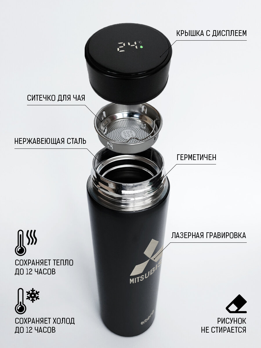 Купить Термос для чая и кофе 500 мл с датчиком температуры Erberg, автомобильный Mitsubishi