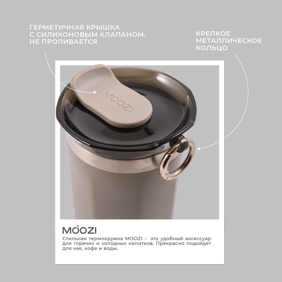 Термокружка MOOZI, для холодных и горячих напитков, 400 мл, цвет серый