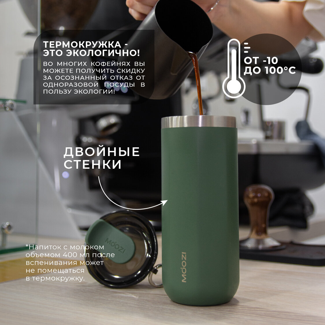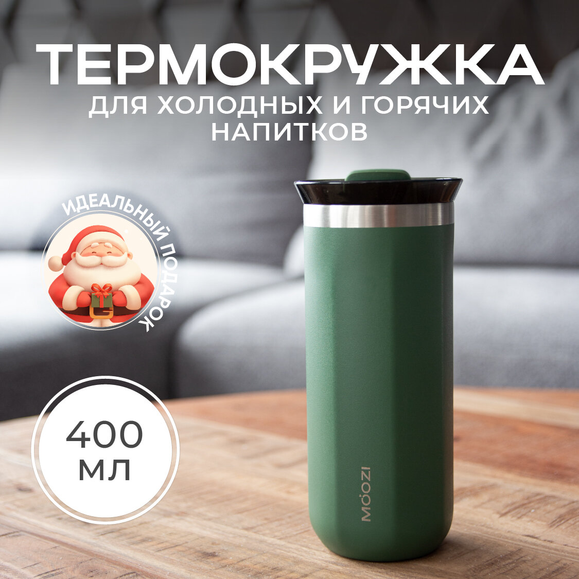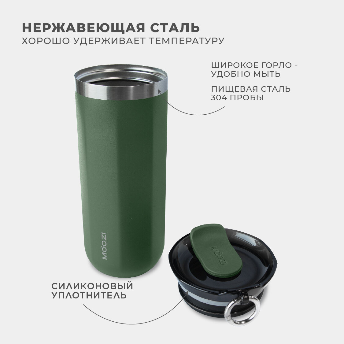 Термокружка MOOZI, для холодных и горячих напитков, 400 мл, цвет зеленый