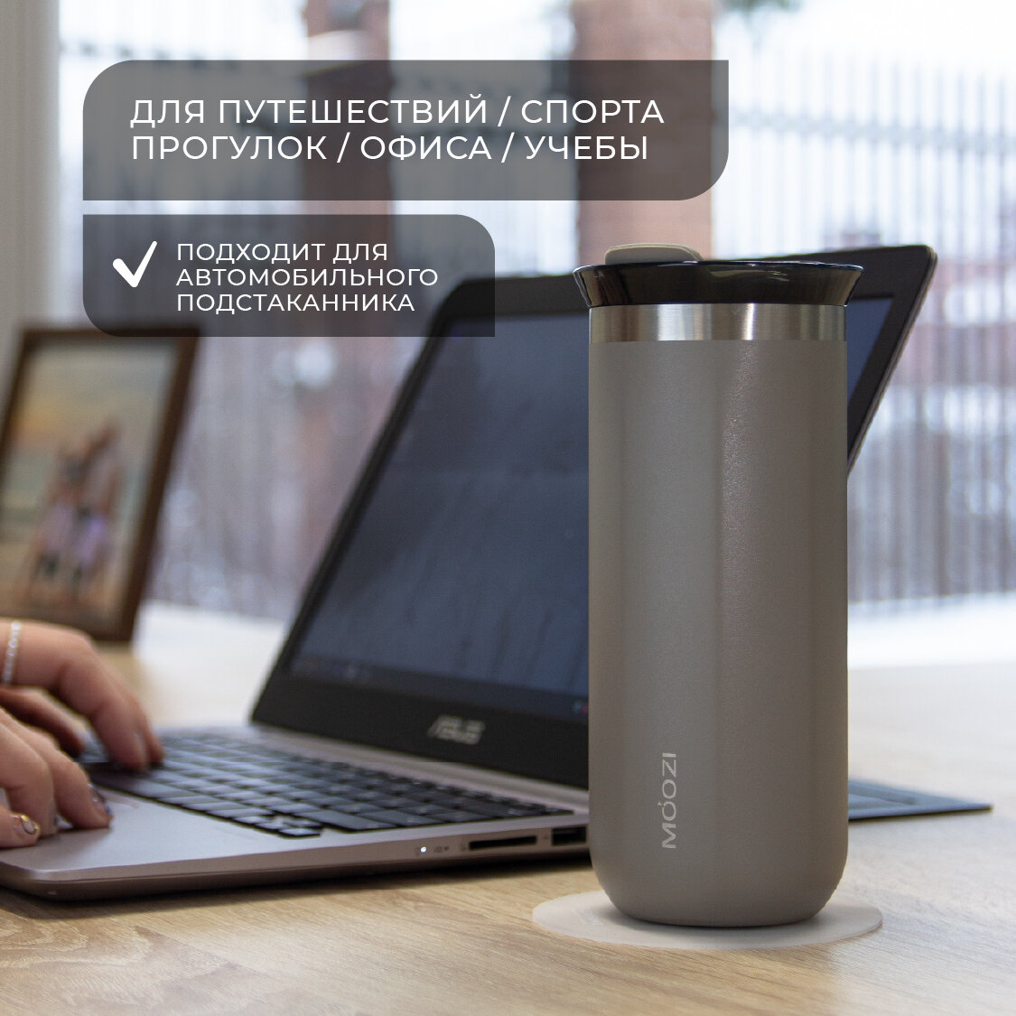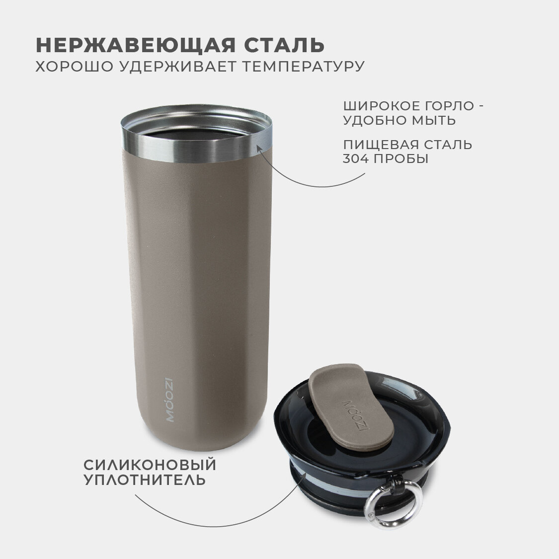 Термокружка MOOZI, для холодных и горячих напитков, 400 мл, цвет серый