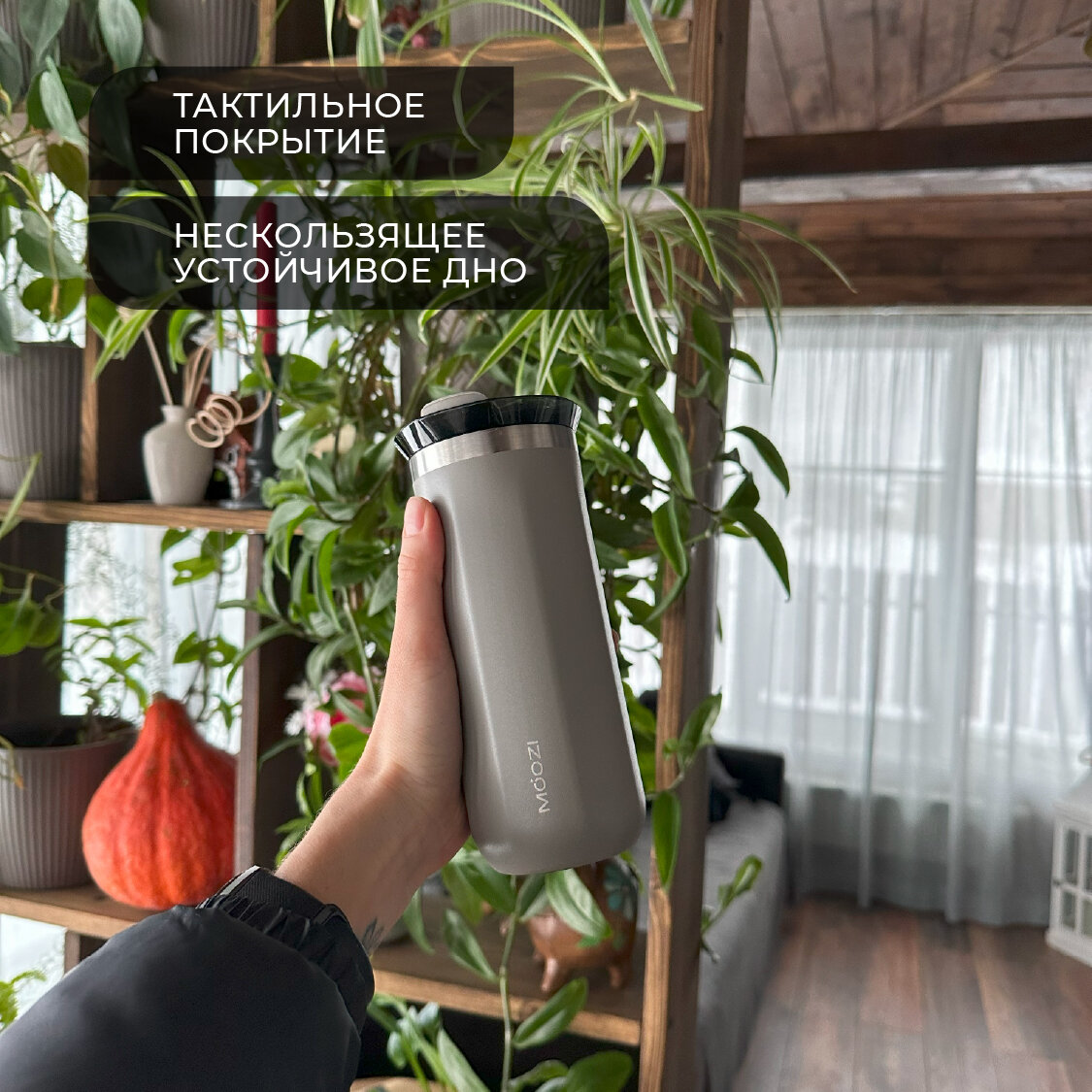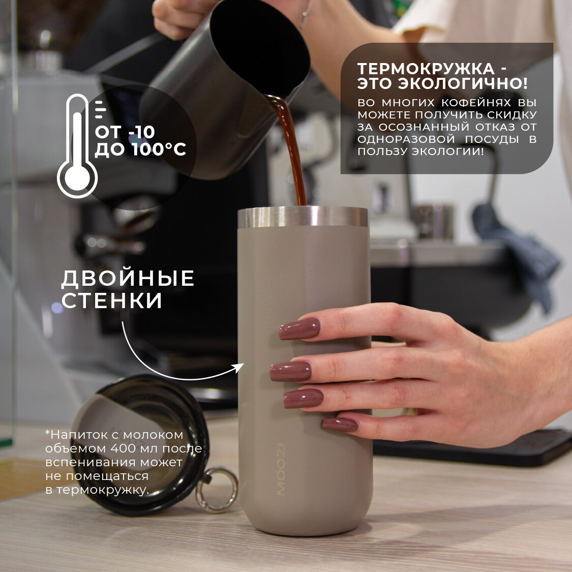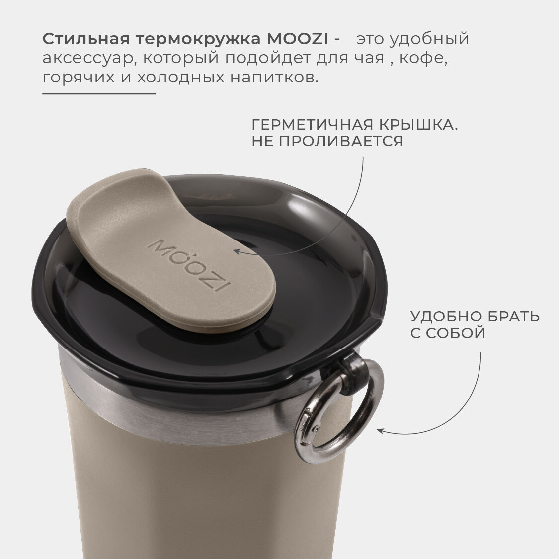 Термокружка MOOZI, для холодных и горячих напитков, 400мл, цвет бежевый