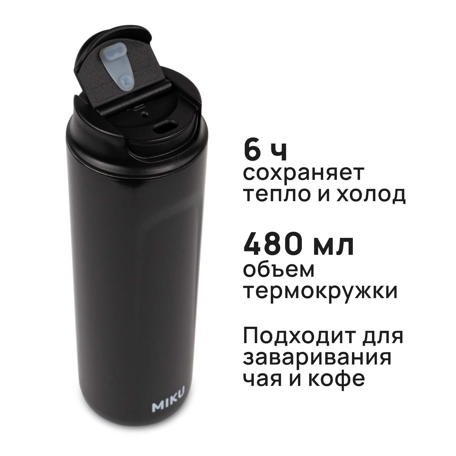 Купить Термокружка с френч-прессом MIKU 480 мл (Черный)