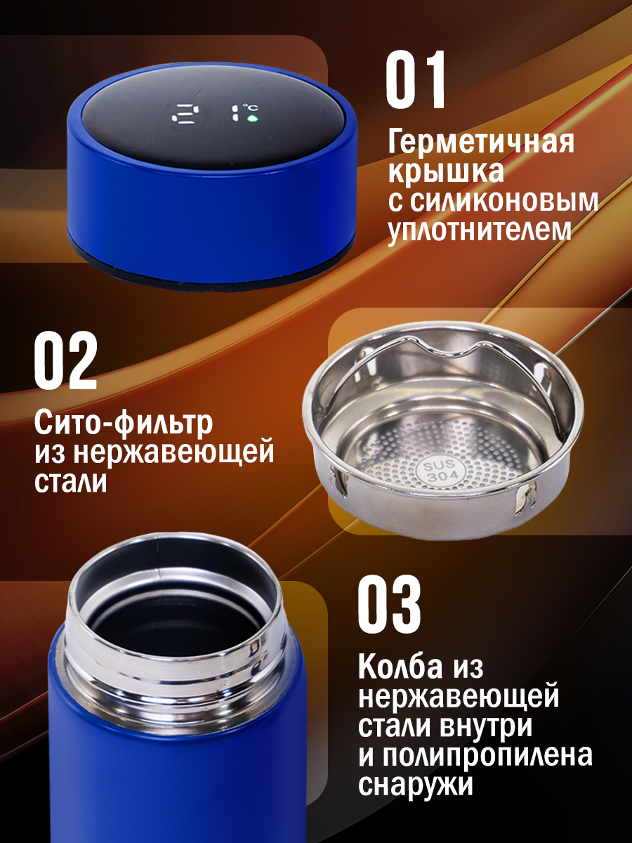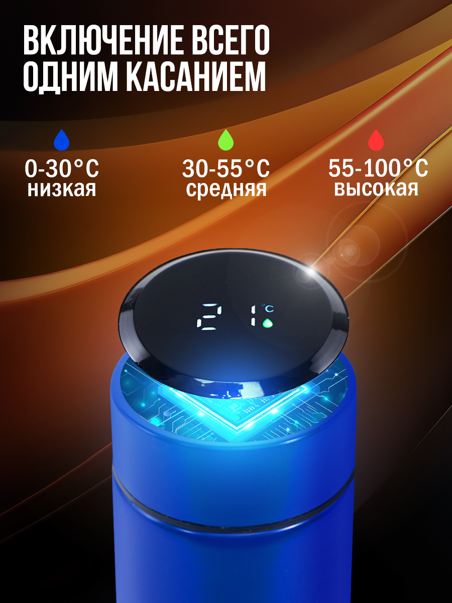 СохранитьТермос IntermoS с датчиком температуры 500 мл, термокружка, синий интересное: