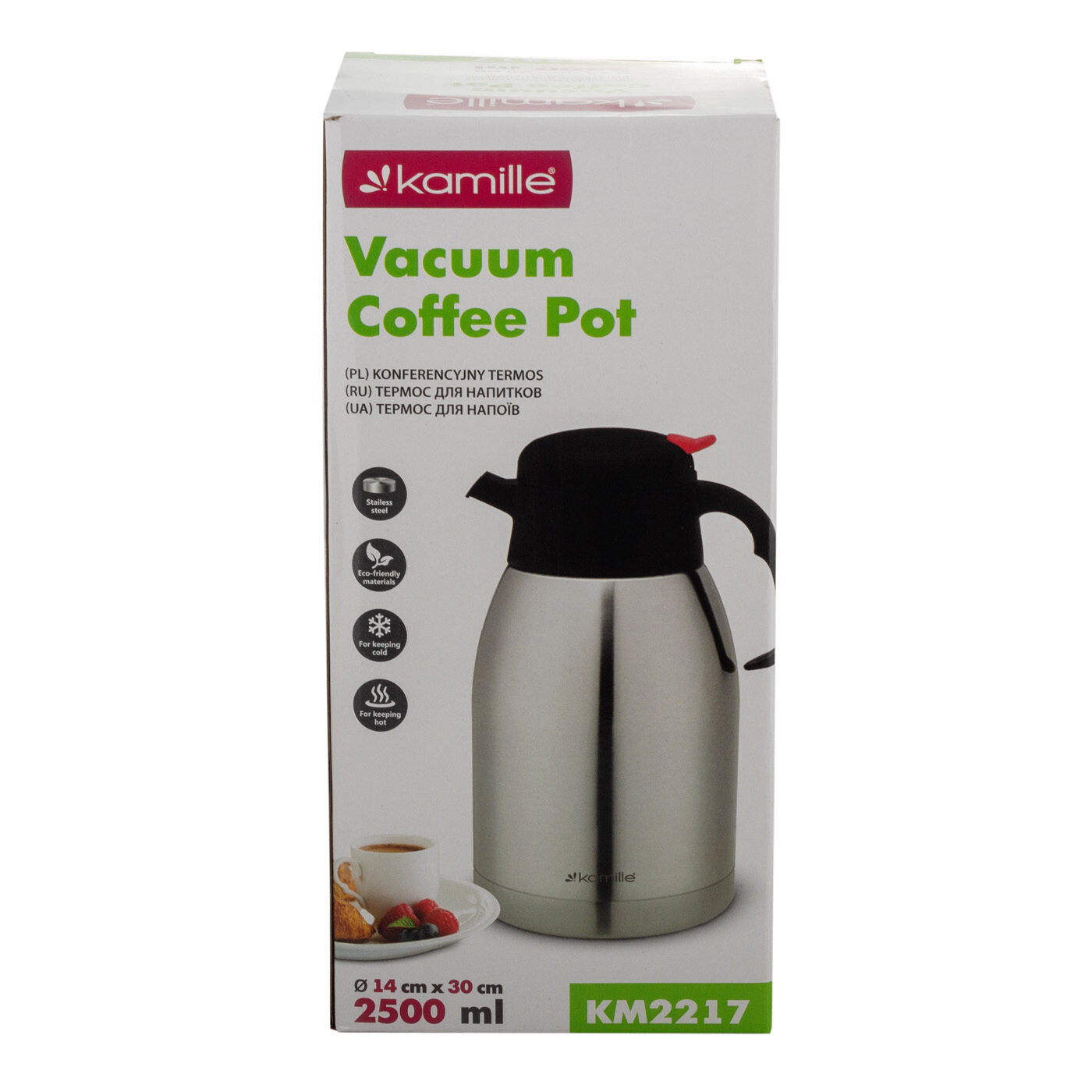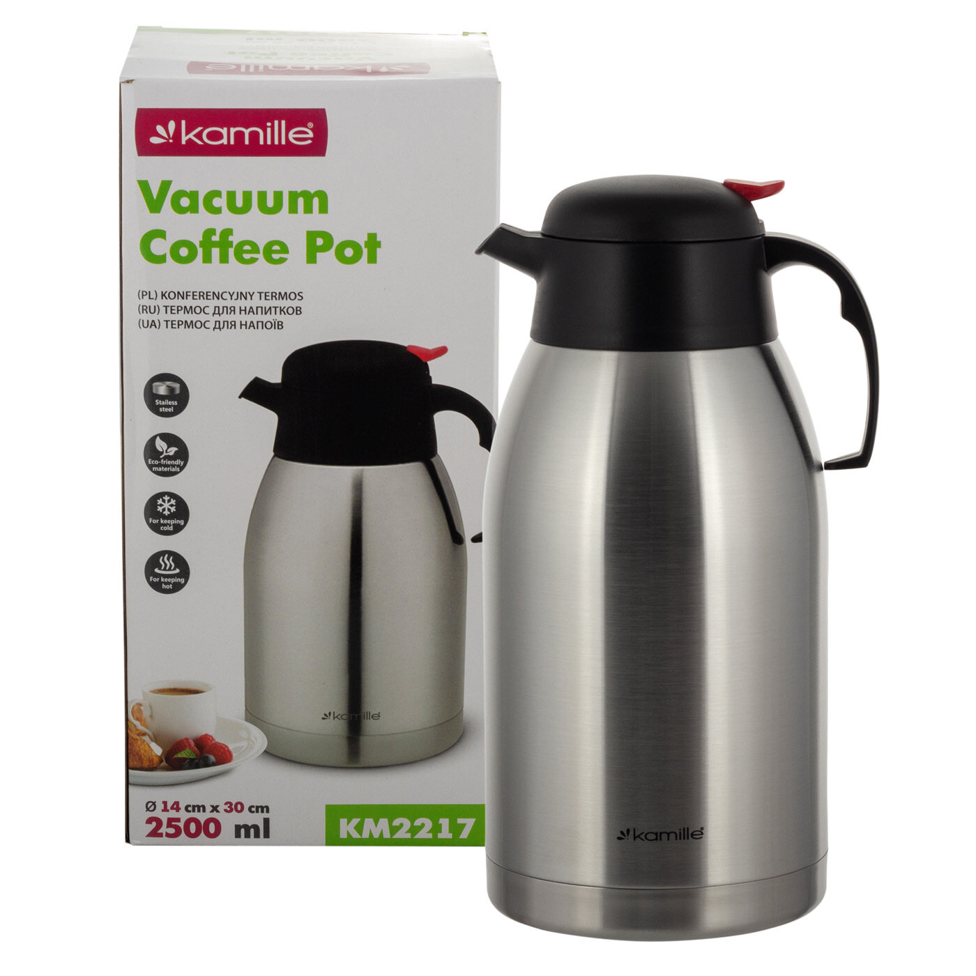 Ниже Вы можете прочитать отзывы на Термос конференция 2500 мл. Kamille KM 2217 из нержавеющей стали (2,5 л. / серебристый), ознакомится с подробными характеристиками, посмотреть интересные обзоры и фотографии на Термос конференция 2500 мл. Kamille KM 2217 из нержавеющей стали (2,5 л. / серебристый).