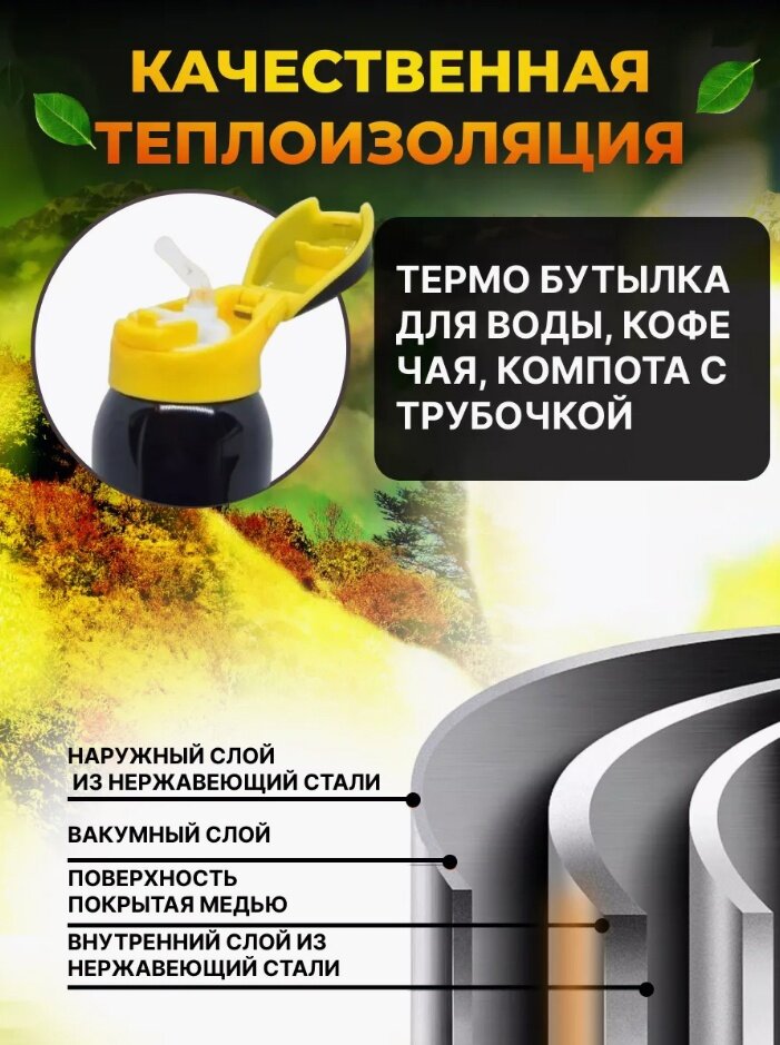 СохранитьТермос из нержавеющей стали с трубкой поильником с вакуумной крышкой 350 мл черный. интересное: