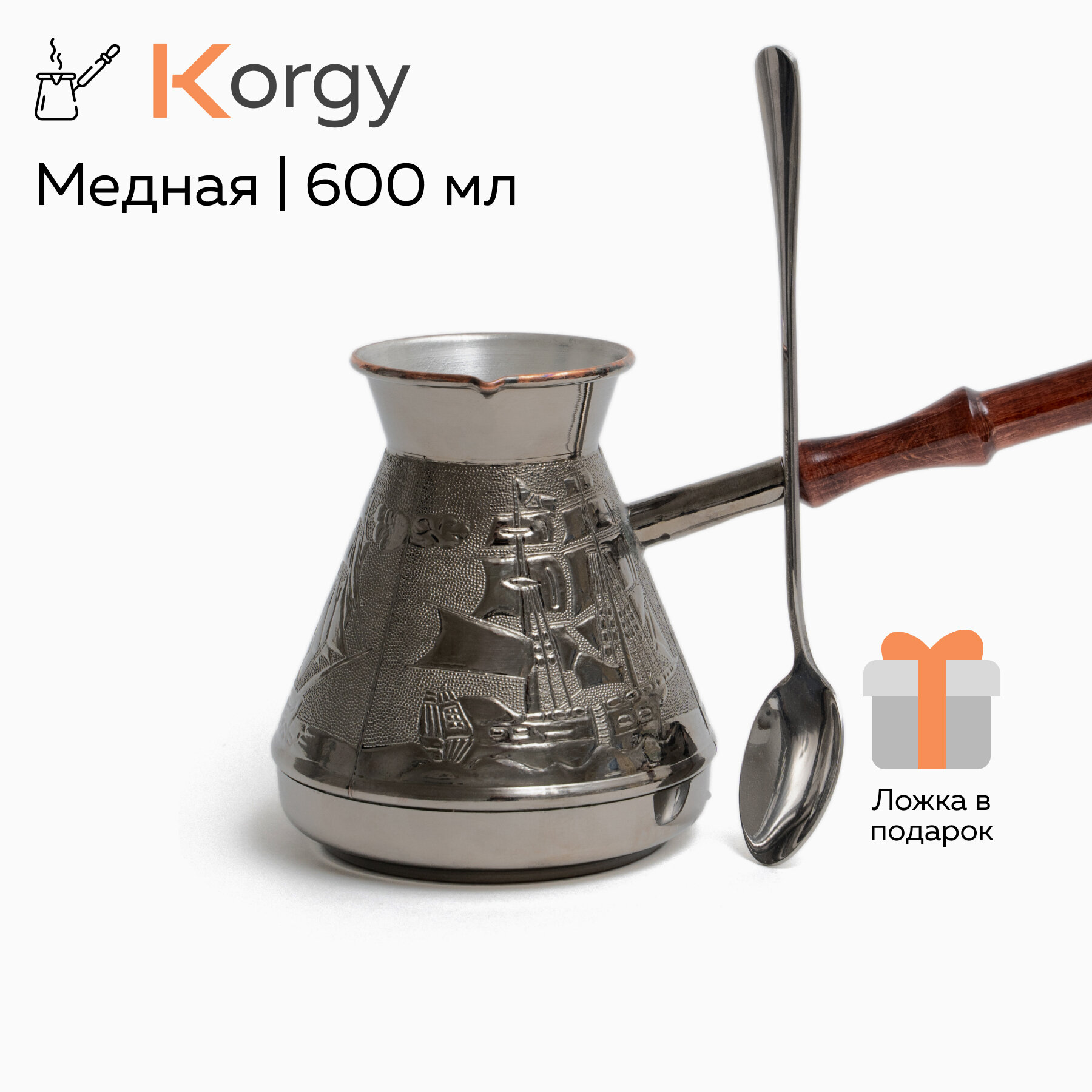 Турка для кофе Korgy медная джезва 600мл с ложкой в надежной упаковке