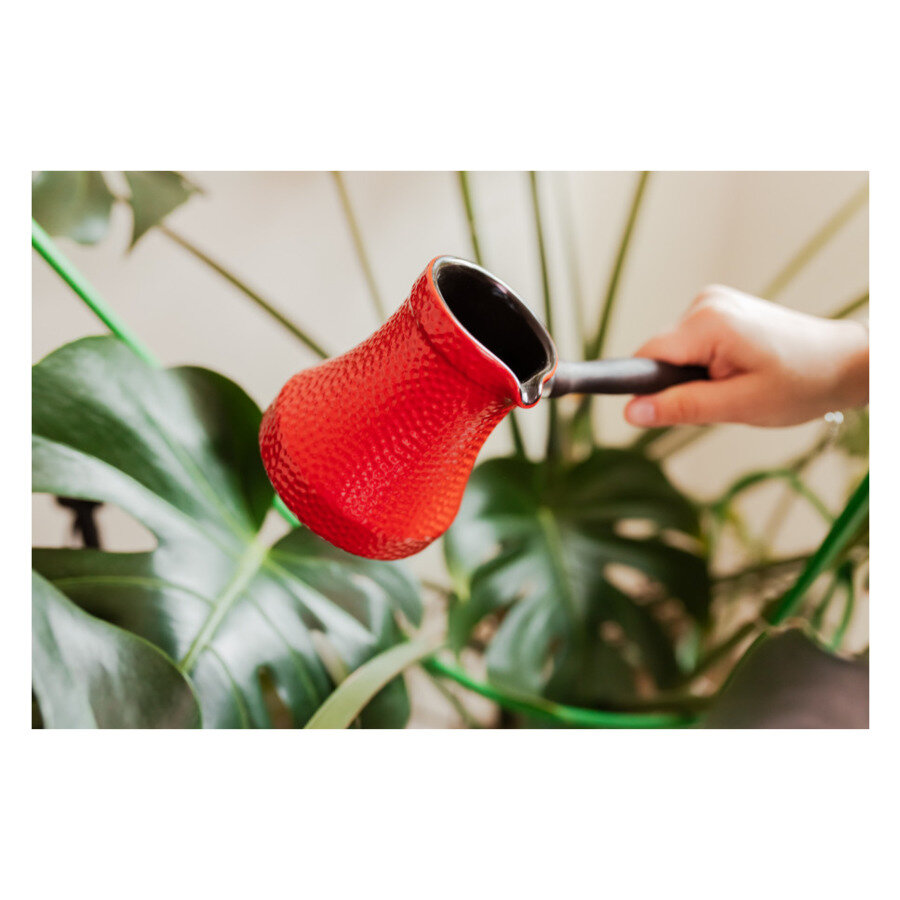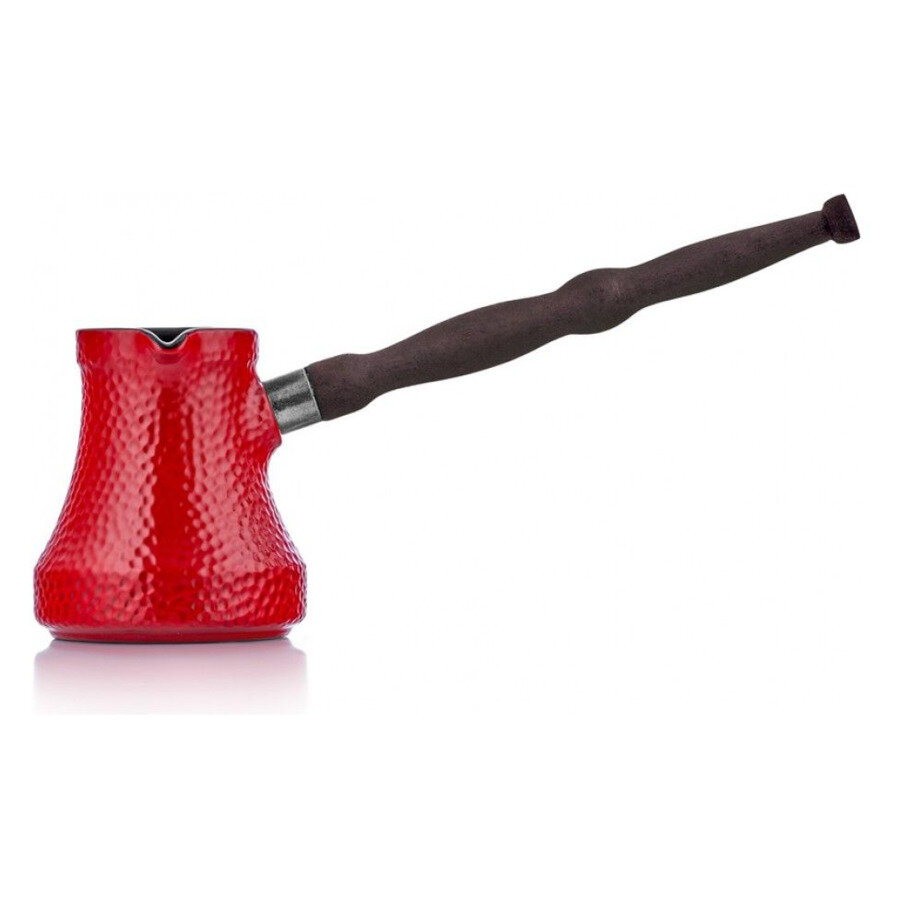 Турка керамическая Ceraflame Hammered 240 мл, красная, ручка дерево интересное: