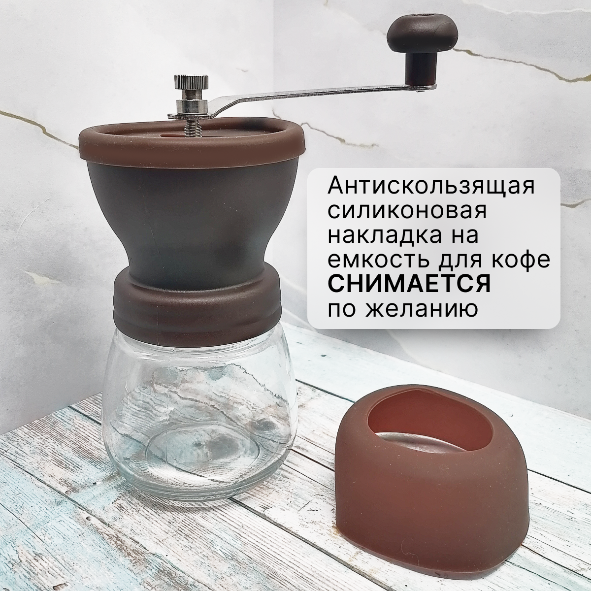 | Дополнительная информация | Силиконовая антискользящая накладка на емкости для смолотого кофе |