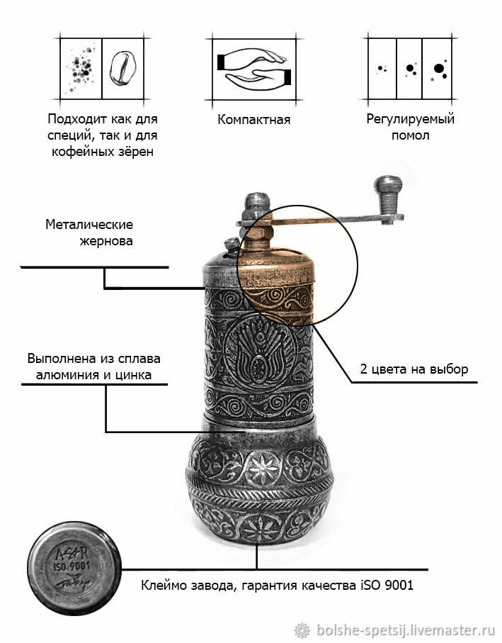Кофемолка Ручная золото интересное: