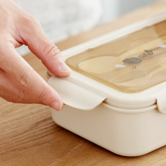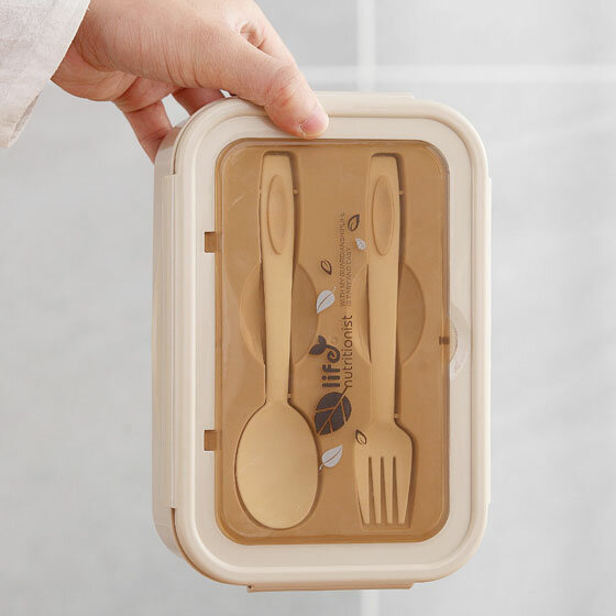 Burrg Ланч-бокс с отделениями и столовыми приборами 1400 мл бежевый, герметичный пищевой контейнер интересное: