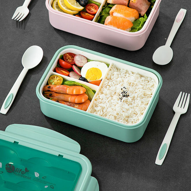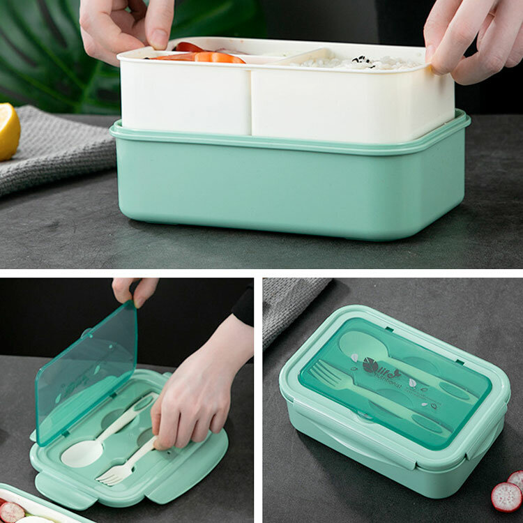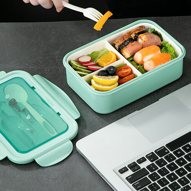Burrg Ланч-бокс с отделениями и столовыми приборами 1400 мл мятный, герметичный пищевой контейнер интересное: