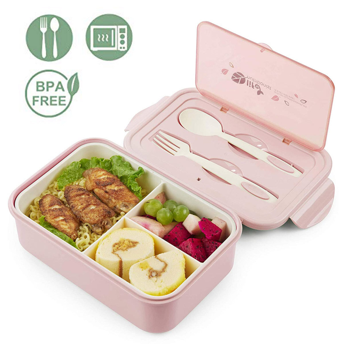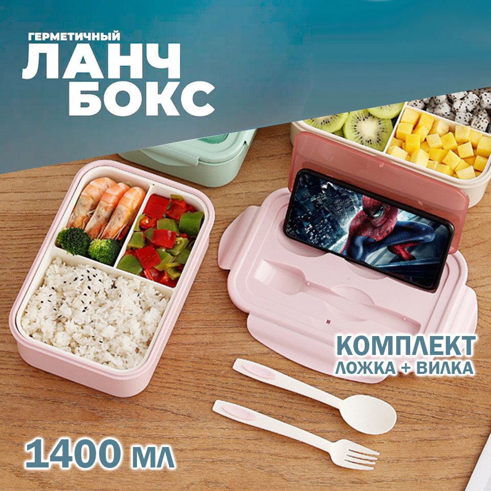 Burrg Ланч-бокс с отделениями и столовыми приборами 1400 мл розовый, герметичный пищевой контейнер интересное: