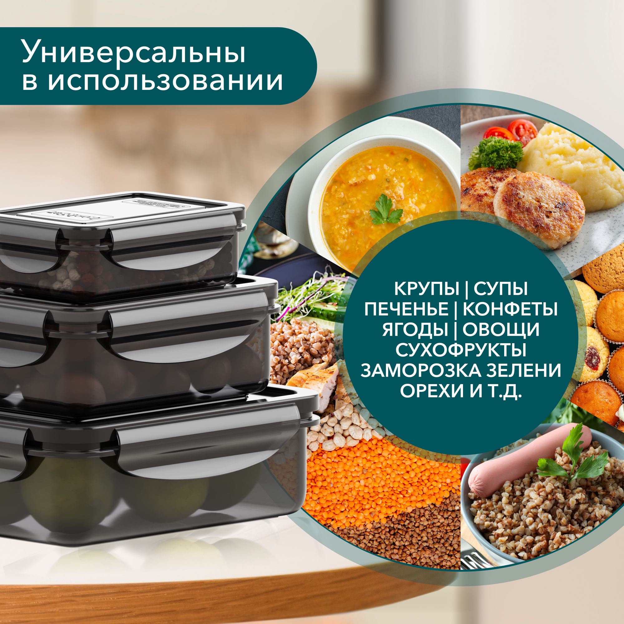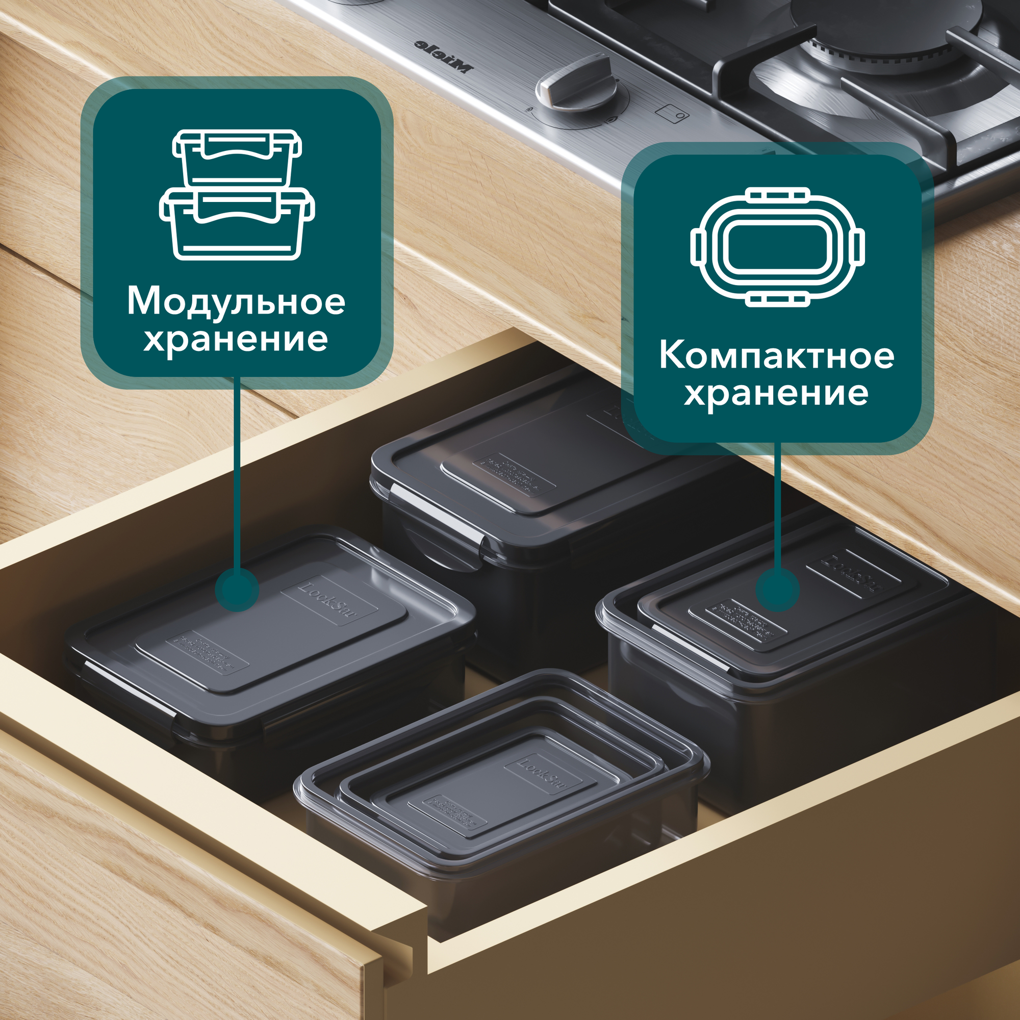 СохранитьКонтейнер для еды герметичный 6 шт LockSar набор контейнеров для хранения продуктов 0,24 л - 2 шт; 0,5 л - 2 шт; 1 л - 1 шт; 1,5 л - 1 шт цвет дымчатый интересное:
