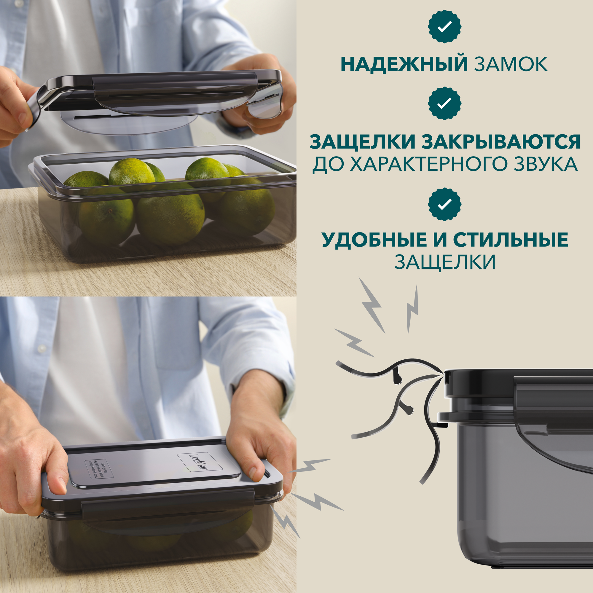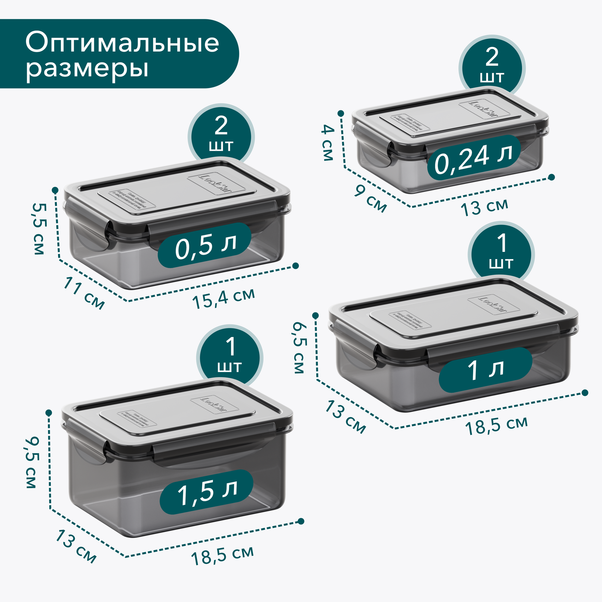 Купить Контейнер для еды герметичный 6 шт LockSar набор контейнеров для хранения продуктов 0,24 л - 2 шт; 0,5 л - 2 шт; 1 л - 1 шт; 1,5 л - 1 шт цвет дымчатый