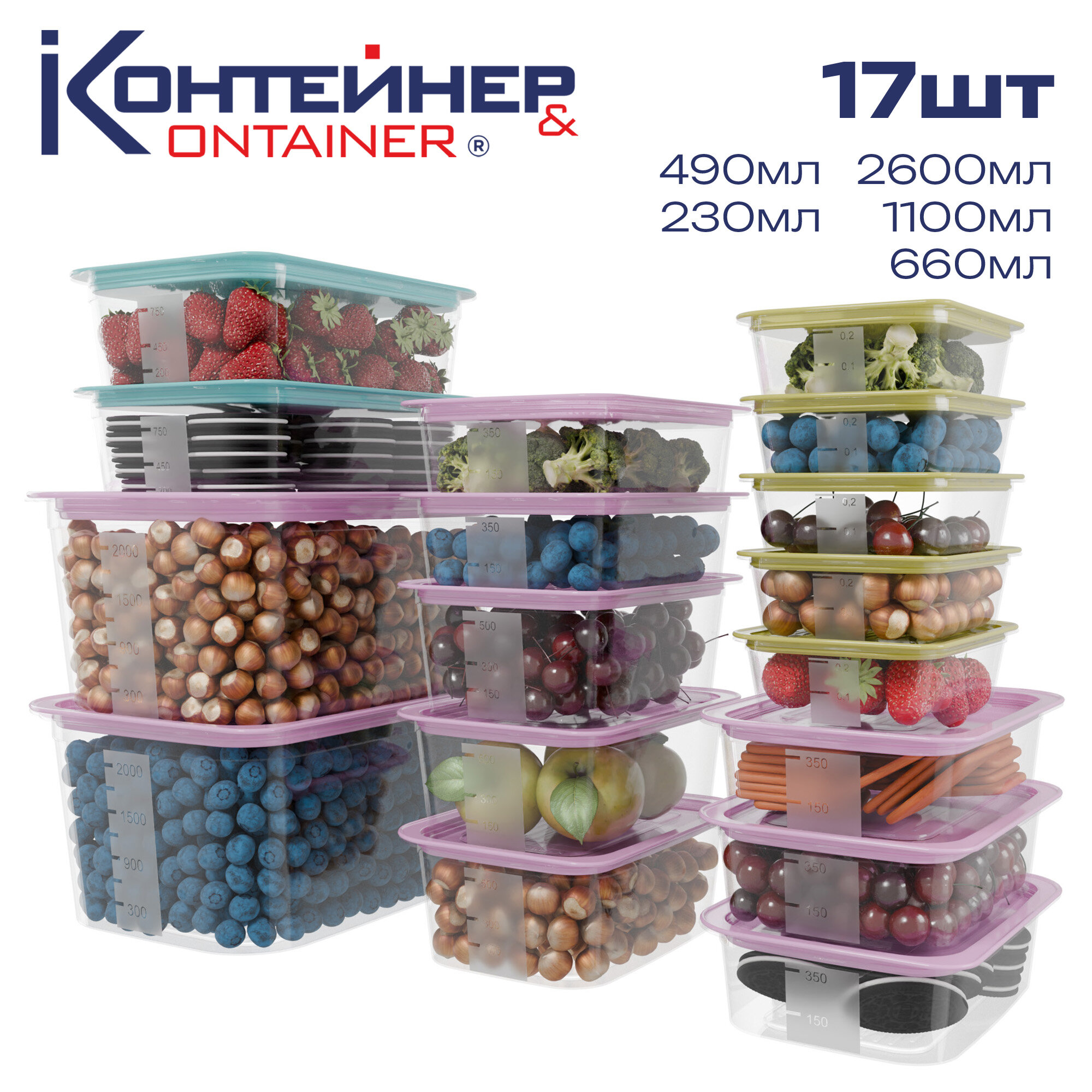 Купить Набор контейнеров для еды Контейнер&Container, 17 шт, 230 мл, 490 мл, 660 мл, 1100 мл, 2600 мл
