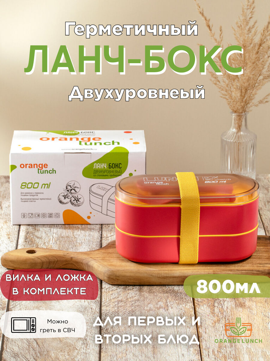 Ланчбокс с приборами двухуровневый Tetra 800мл бордовый интересное: