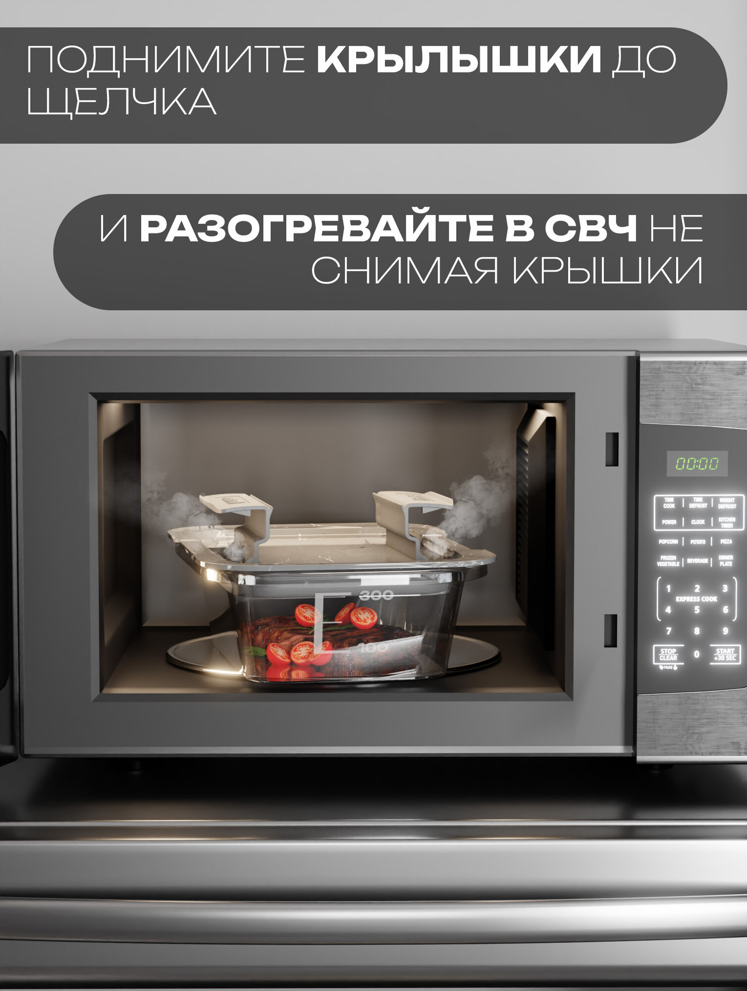 | Дополнительная информация | использование в СВЧ с закрытой крышкой (надо поднять защелки вверх), мерная шкала, объем контейнера на дне ёмкости |