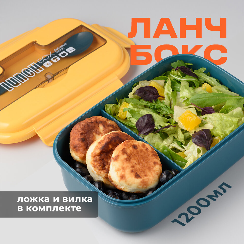 Ланч бокс для еды Shiny Kitchen с отделениями и приборами, 1200 мл интересное: