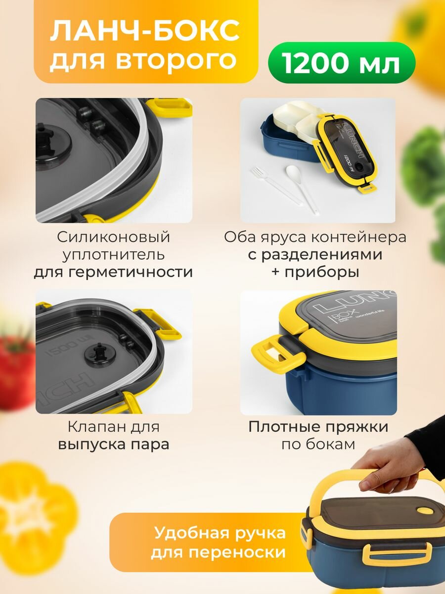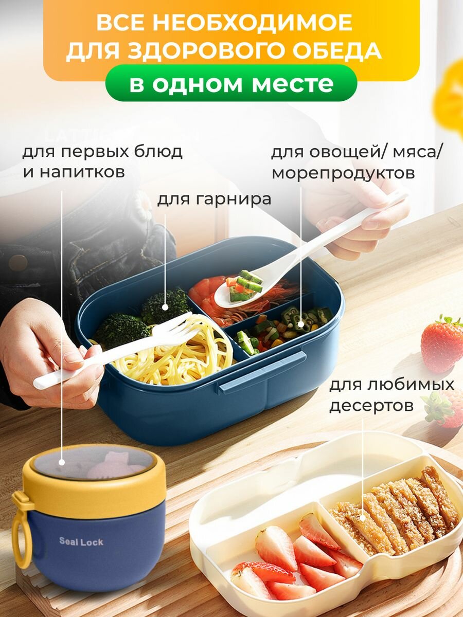 Контейнер для еды с отделениями с сумкой. Ланч бокс с приборами, для супа, с термосумкой.